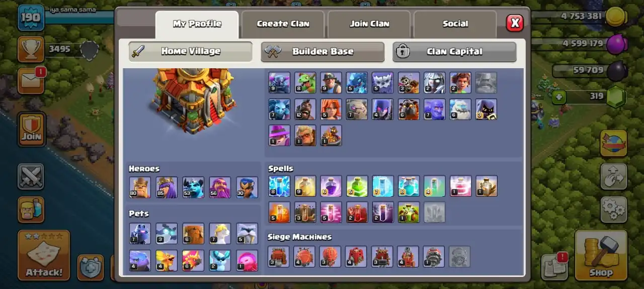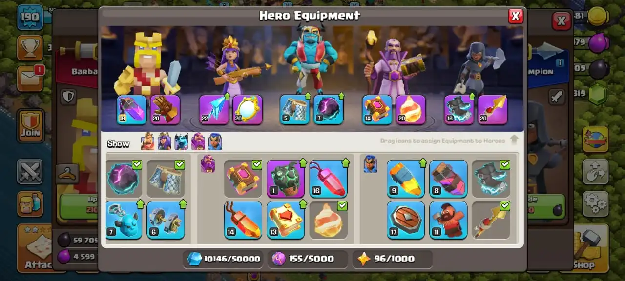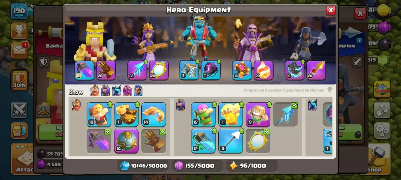 Cheapest🔥TH 16 almost max🔥high heroes level 80/85/53/56/30☠️9 epic equipment⚒️6 builder’s⚒️all helper opened⭐️347 cwl medal✅pixel scenery and 5 hero skin