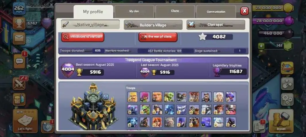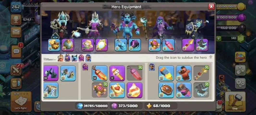 COC138 // 17TH FULL 99% 262LVL 11 Epic Gear Heroes 100/100/75/50 7 Design + Skins Rebound