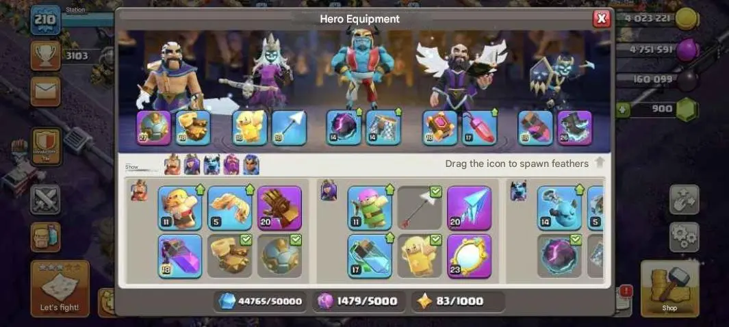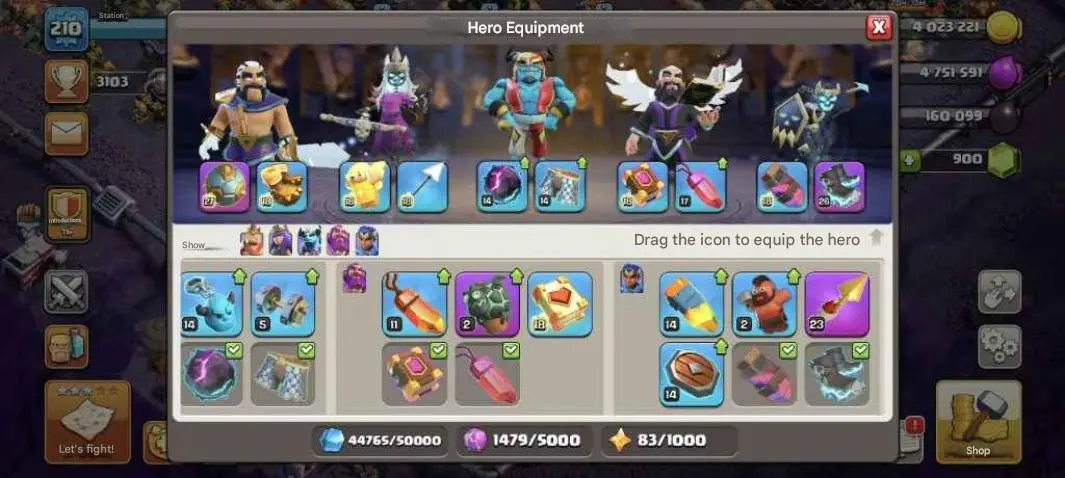 COC147 // 17TH 210LVL 7 Epic Gear Heroes 90/91/56/45 FORM + 16 Skins Re-binding