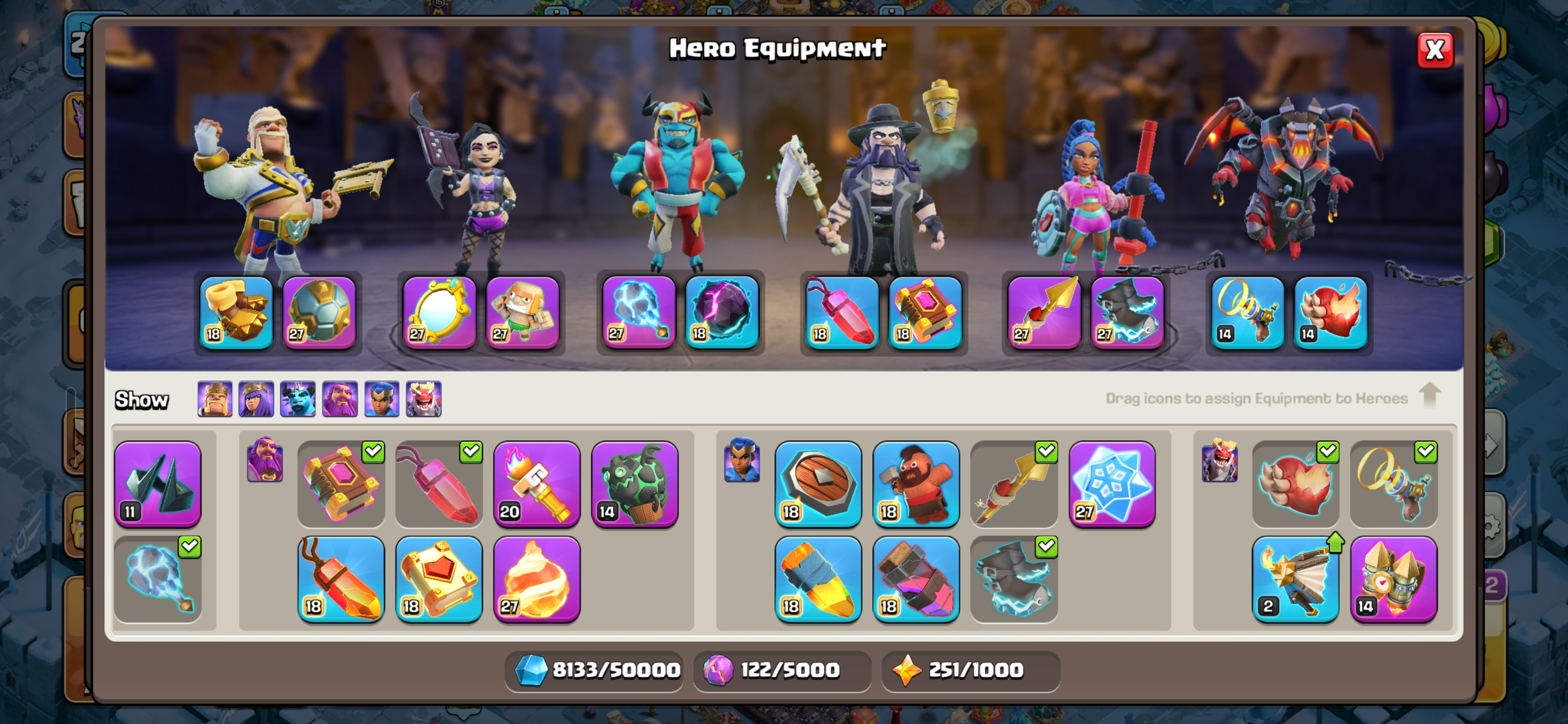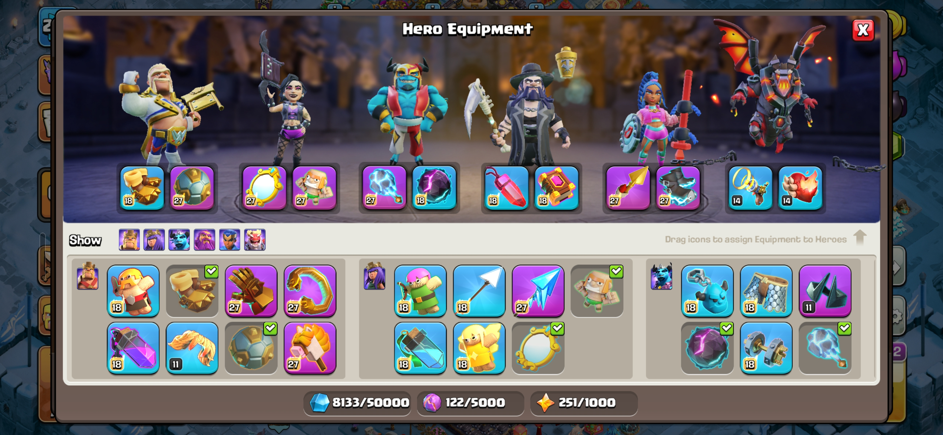 F1💙 RAREST 50X SCENERY 💙 183 HEROES SKINS 💙 TH-18 MAXED 💙 6X HEROES MAXED 💙 SOLID EPIC EQUIPMENT 💙 50% DISCOUNT SHOP💙 RAREST DECORATED CAKES/TREES 💙