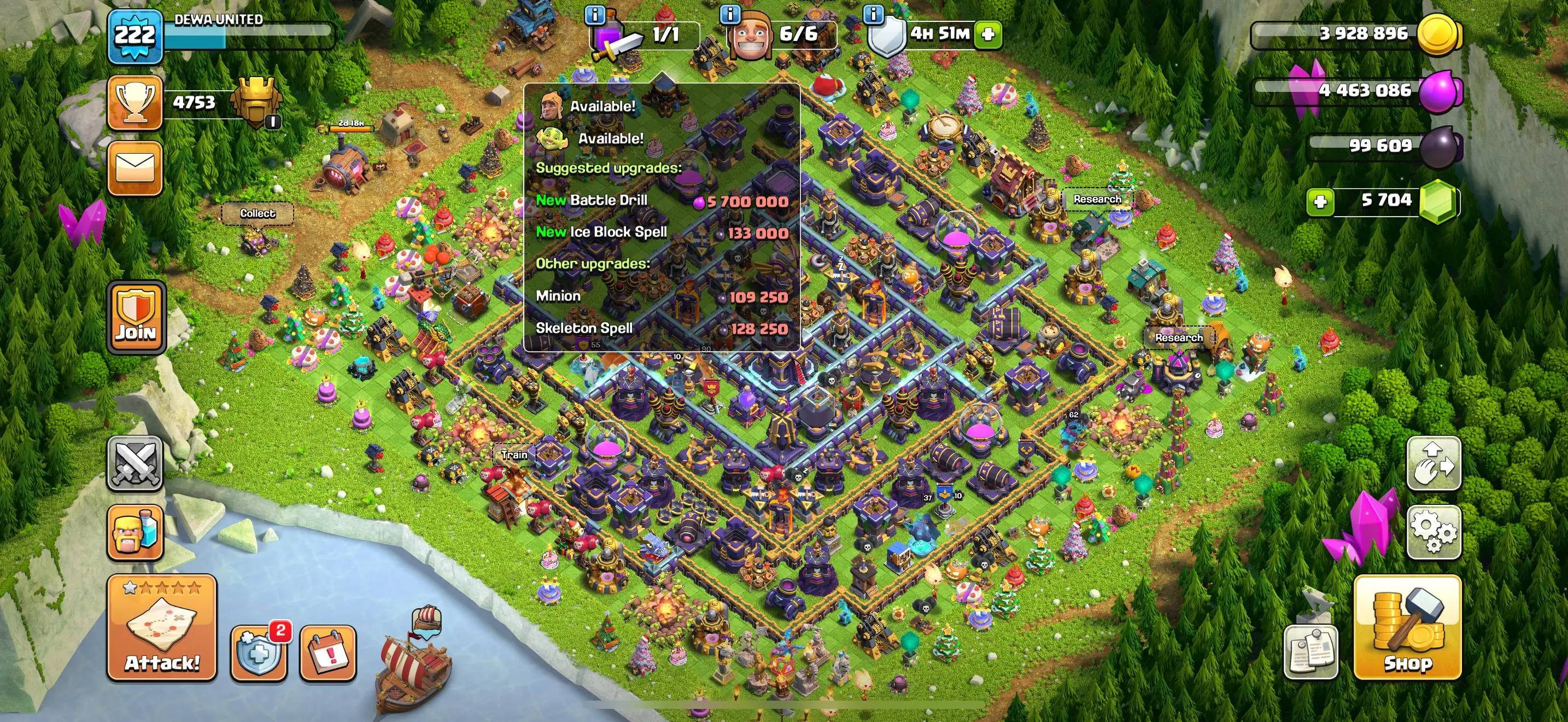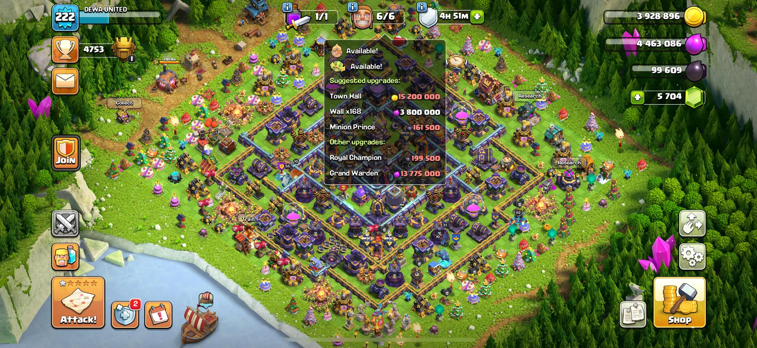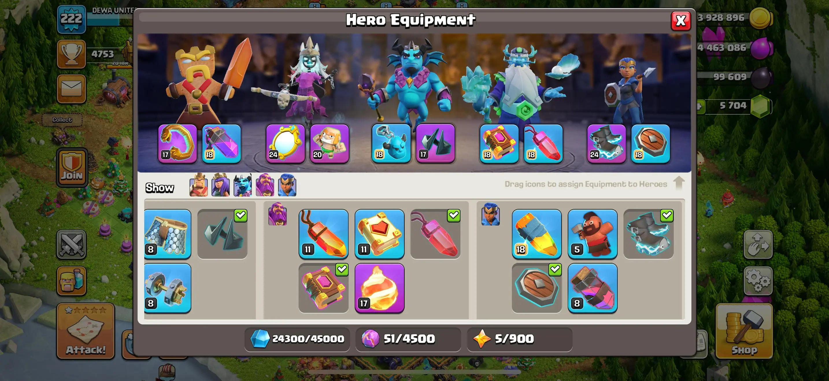 Flash sale💥Town hall 15 allmost max🔥95% max troops💥5,700 gems💥high hero level 90,90,62,55,37💥7 epic equipment💥700 points League shop💥💥💥💥💥