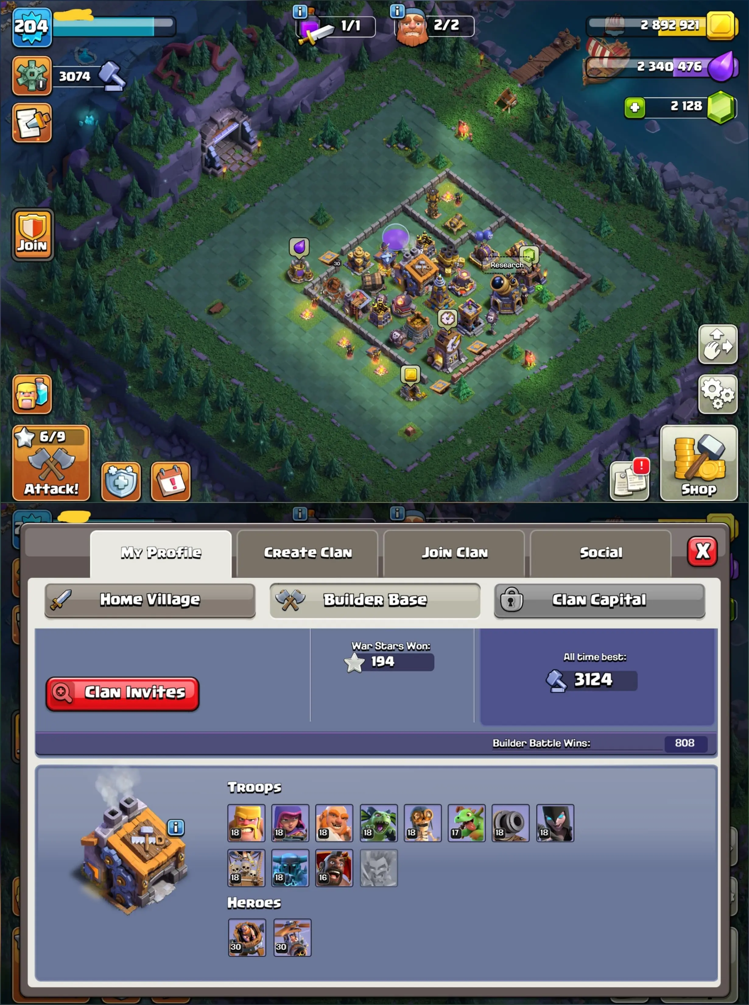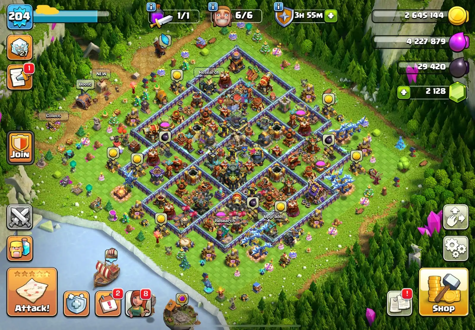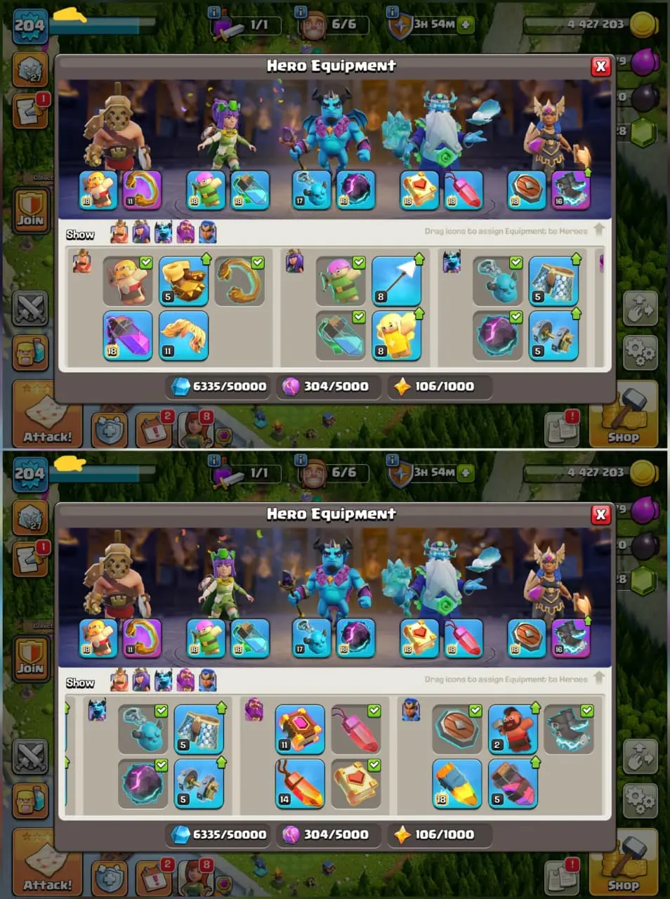 💥 MUST BUY 💰 TH17 ⚡ XP 204 ⚔️ 9 EQUPMENT MAX 👑 6 HEROES SKINS 🏅 780+ CWL MEDALS 🔄 NAME CHANGABLE 💫 2.1K GEMS 💥 INSTANT DELIVERY