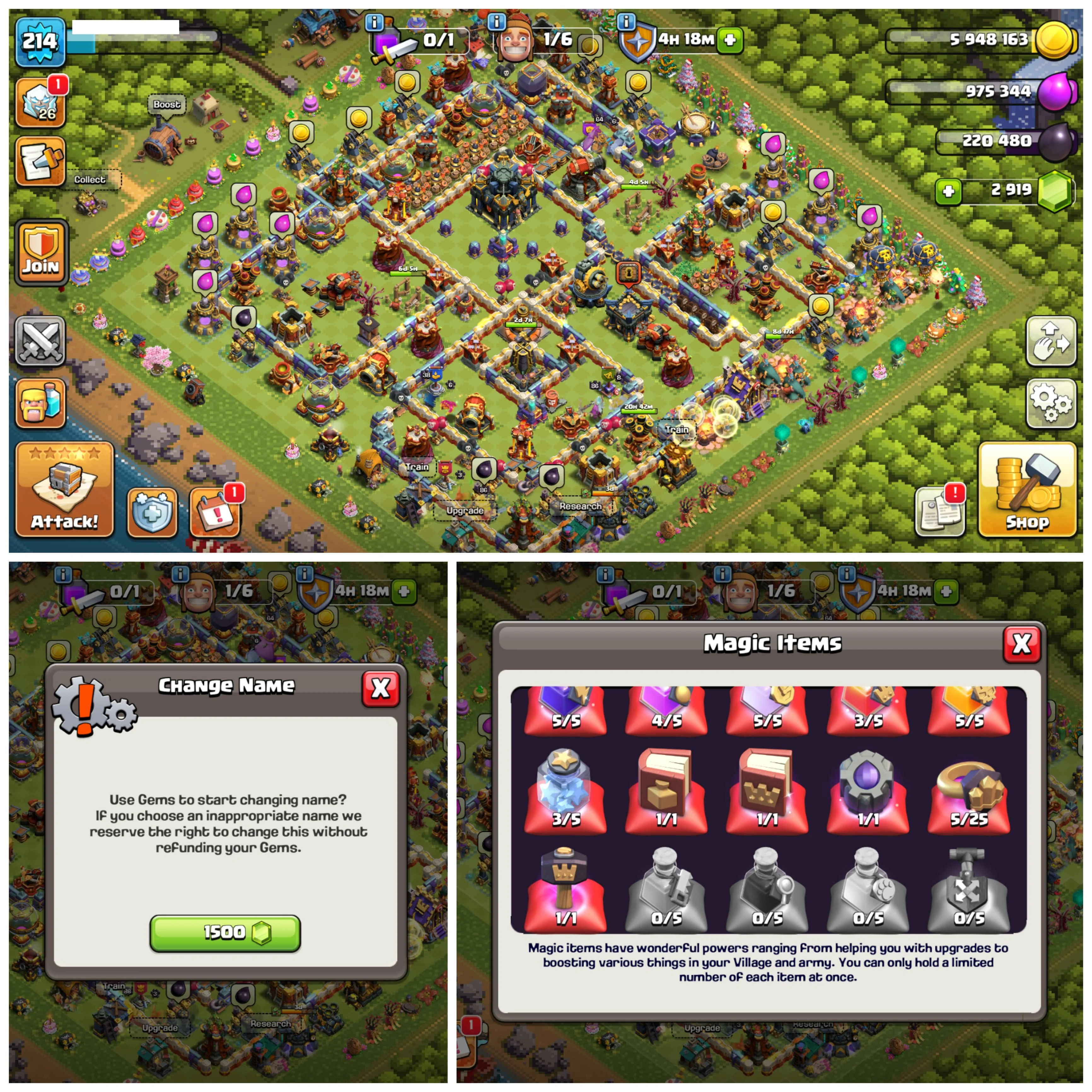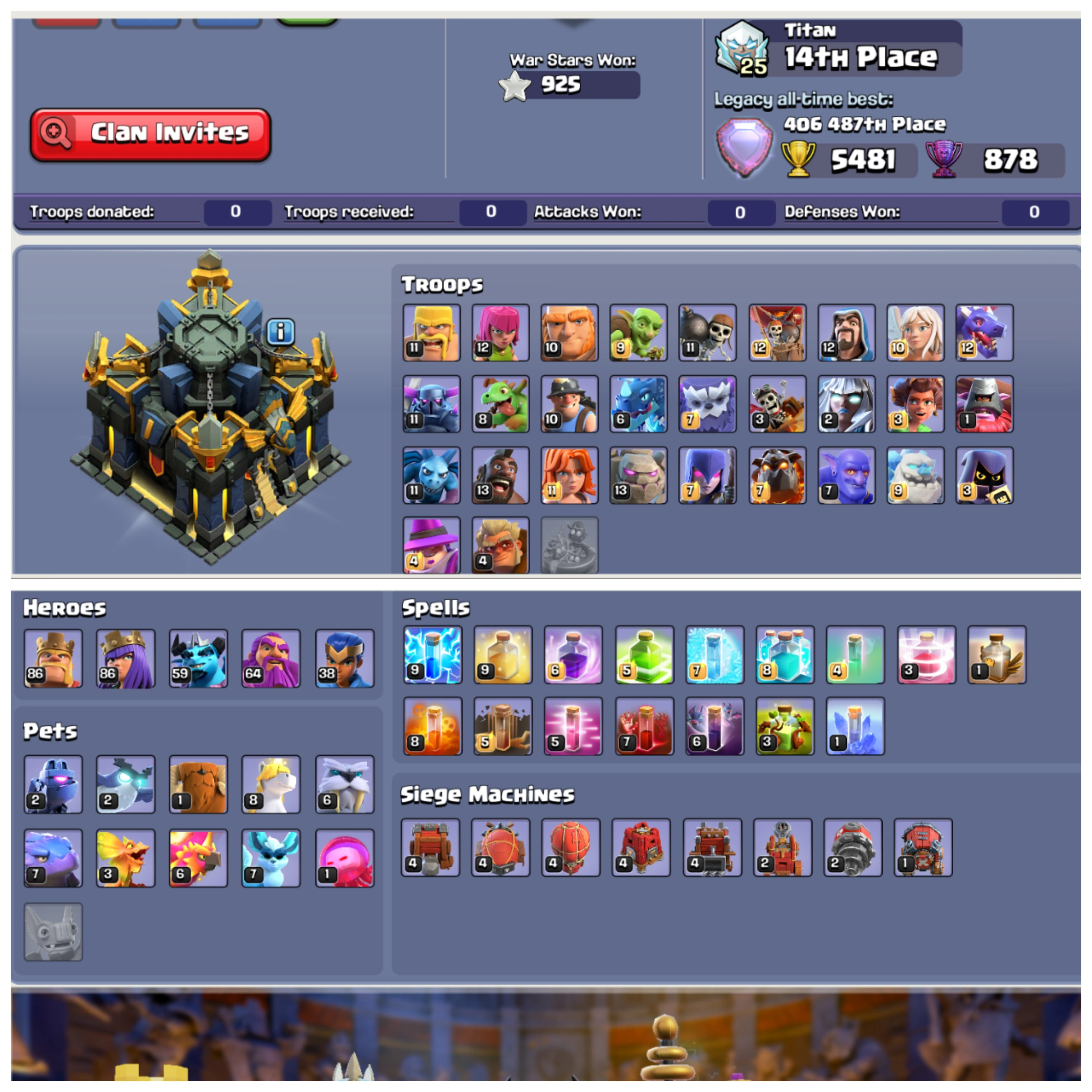 🌳 Rare Tons Of ClashTrees & Cakes 💎 TH 17 Near Max 🧩 9 Epic Equipments 💪 Crazy Heroes ⚗️ Awesome Laboratory 🎭 8 Skins ✨ Name Changeable ⚡ Instant Delivery