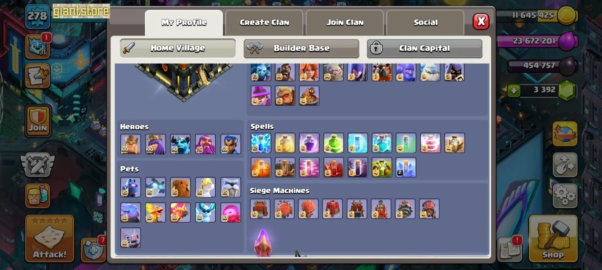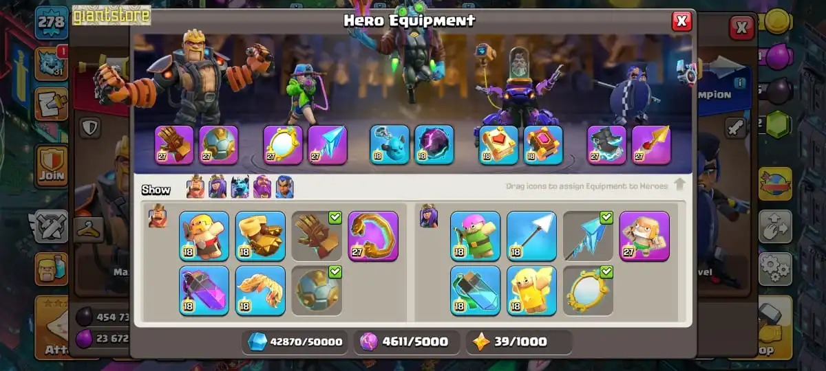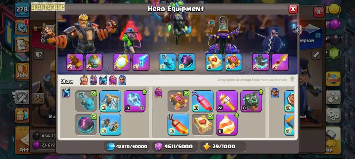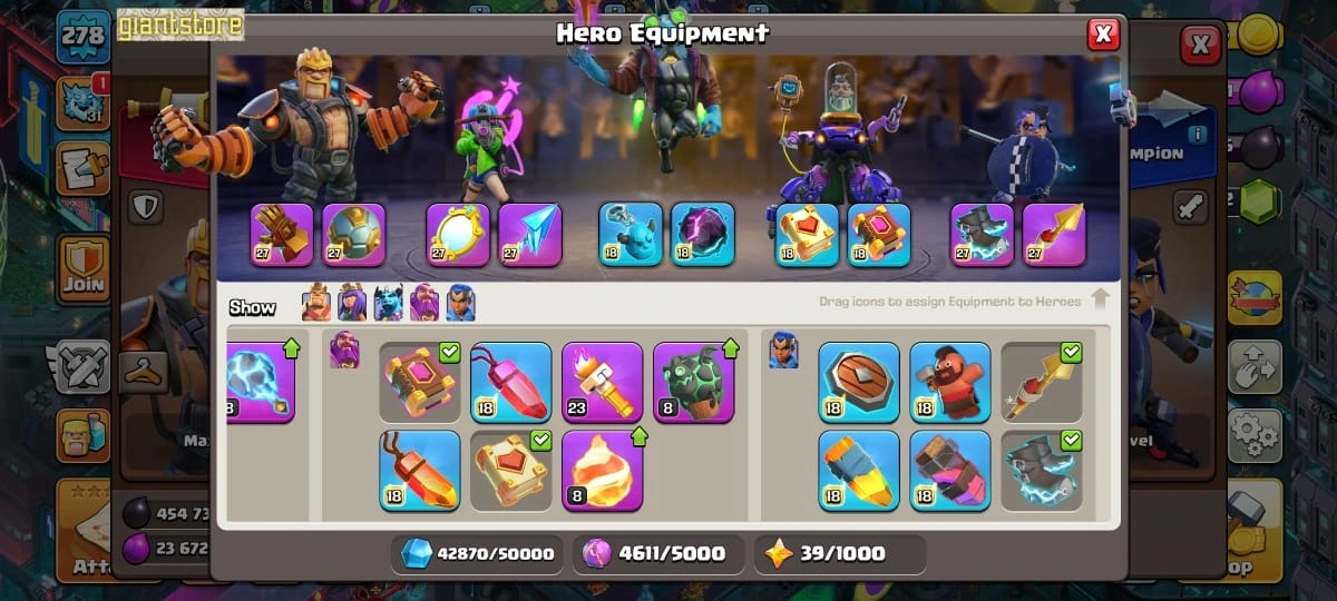 RARE☠️8 MAX EPIC EQUIPMENT✅set cyber heroes skin and scenery🔥TH 17 ALL MAX🔥max heroes🔥max pets🔥max troops⚒️max builder base💎3300 gems⭐️1548 cwl medal