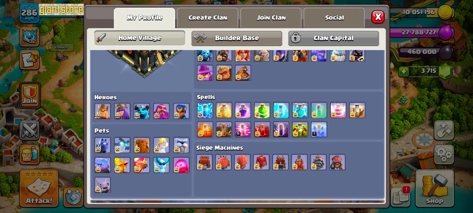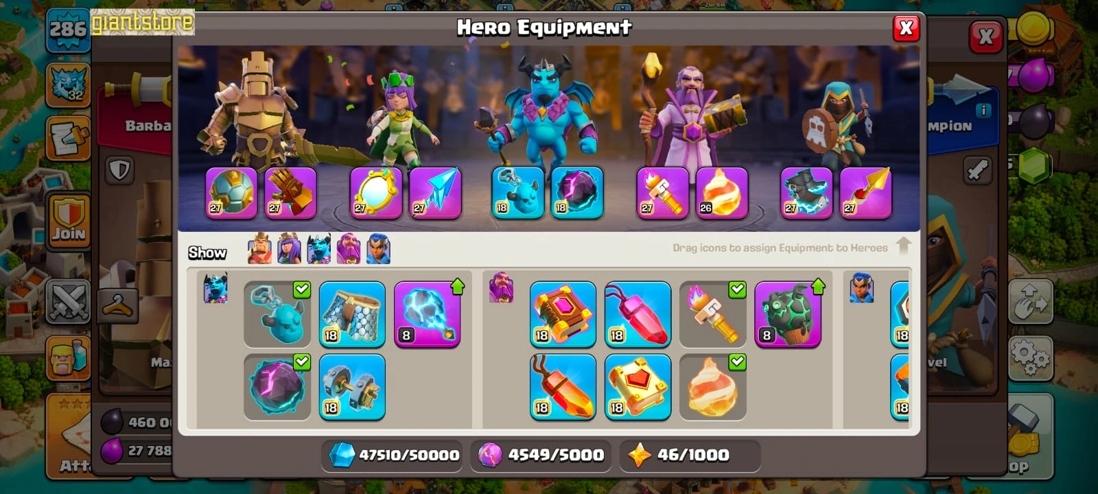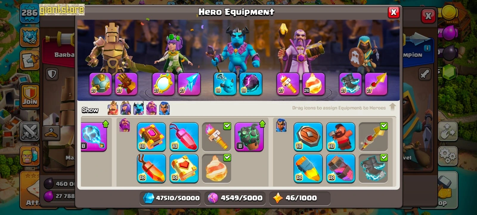 RARE☠️8 MAX EPIC EQUIPMENT🔥TH 17 ALL MAX🔥max heroes🔥max pets🔥max troops⚒️max builder base⚡️all supercharge💎3720 gems⭐️975 cwl medal