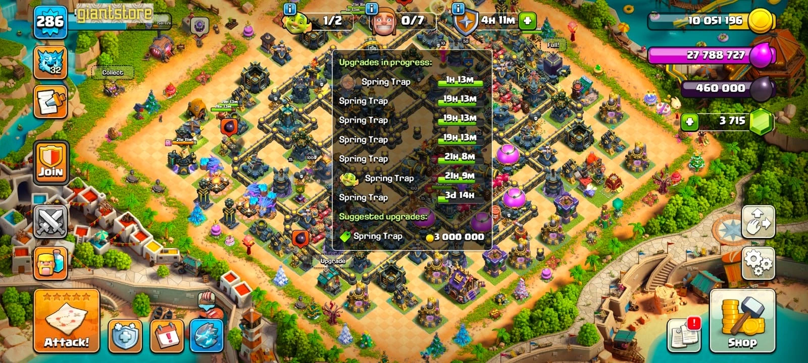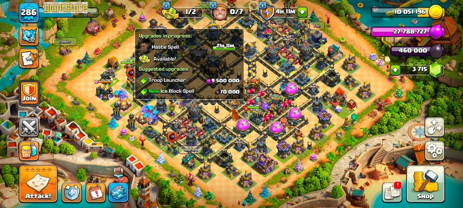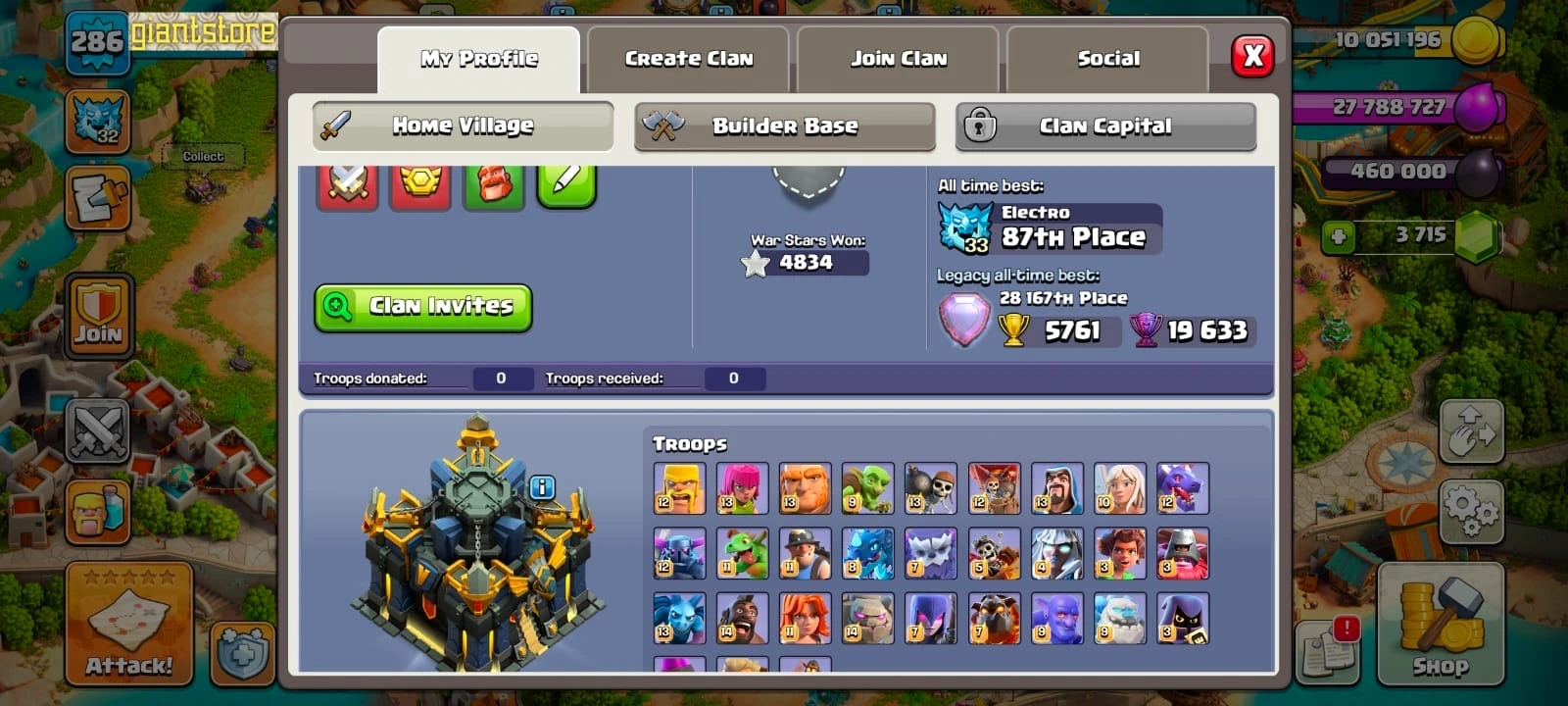 RARE☠️8 MAX EPIC EQUIPMENT🔥TH 17 ALL MAX🔥max heroes🔥max pets🔥max troops⚒️max builder base⚡️all supercharge💎3720 gems⭐️975 cwl medal