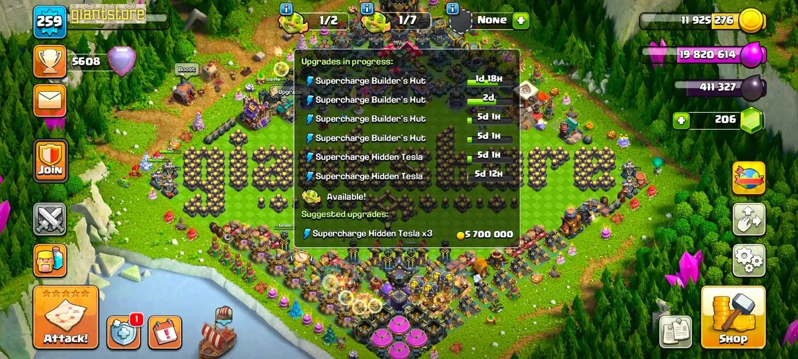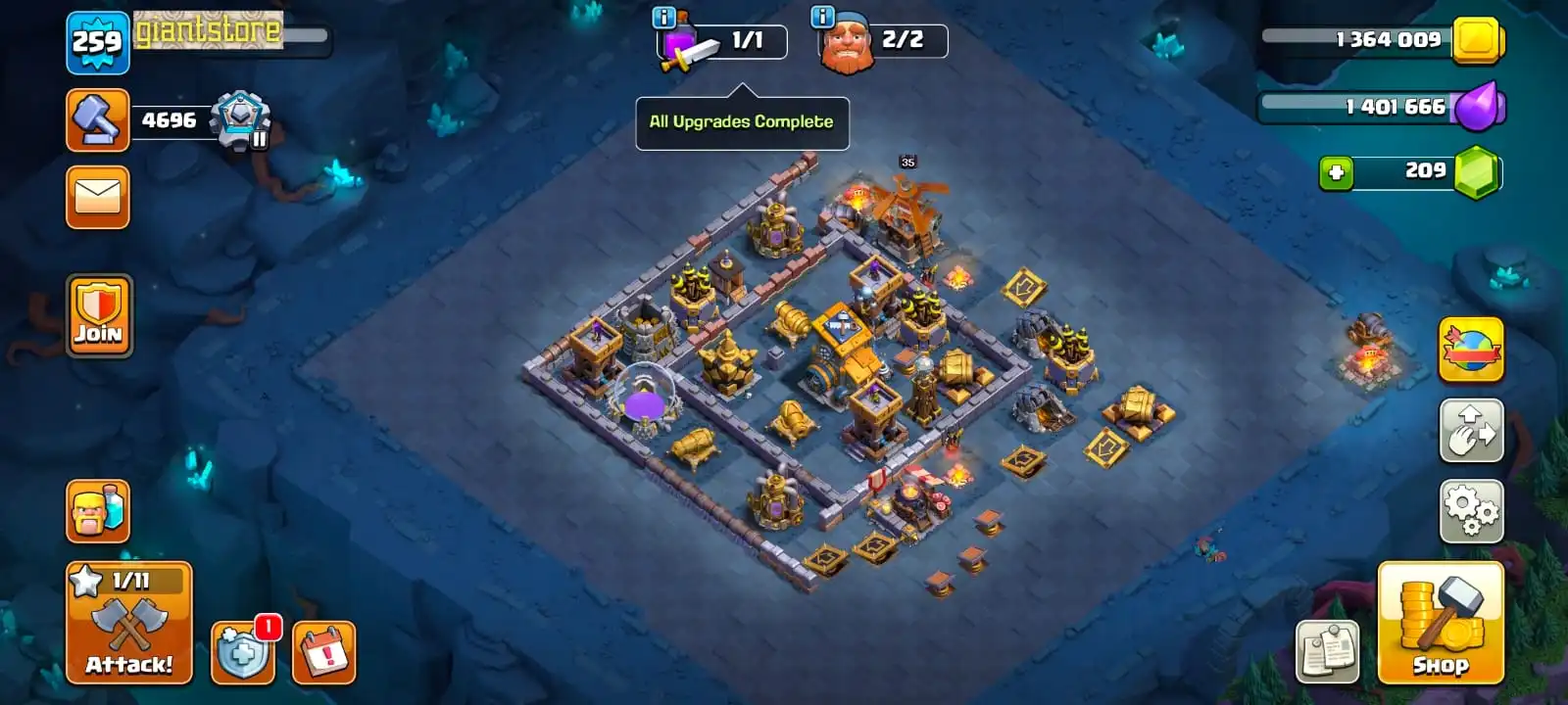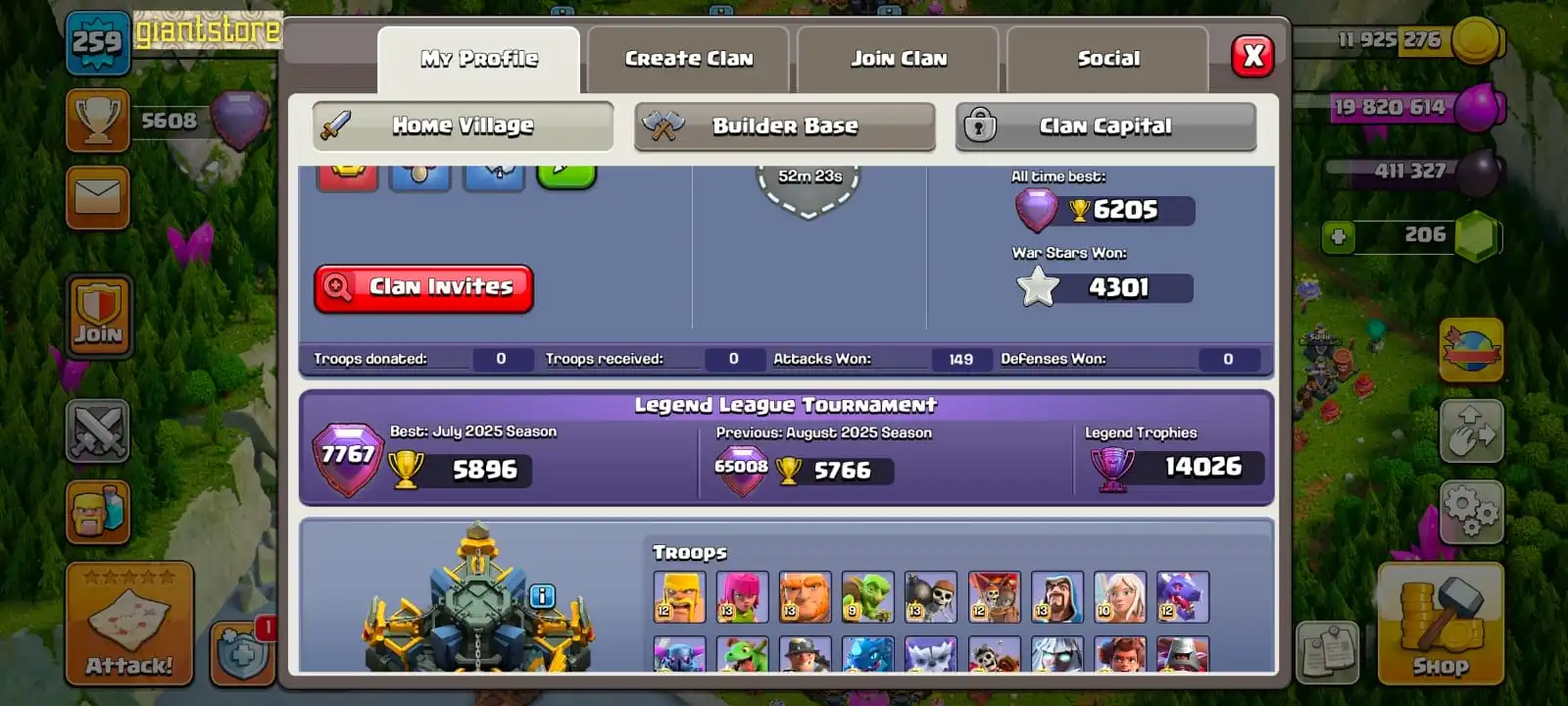 RARE🔥TH 17 MAX☠️6 max epic equipment🔥max heroes🔥max pets🔥max troops⚒️max builder base⭐️1400 cwl medal⚡️all supercharge defense
