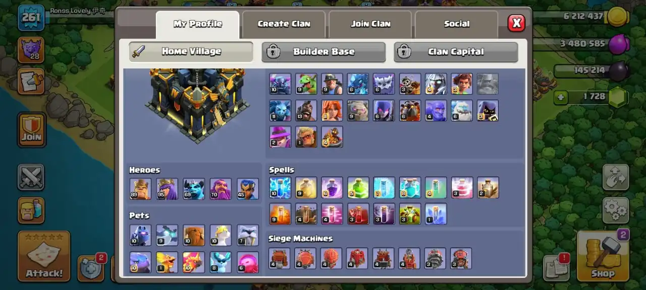TH 17 semi maxđ„high heroes level 89/95/69/70/45â ïžfull equipment 32/32âïžmax builderâs apprenticeâ