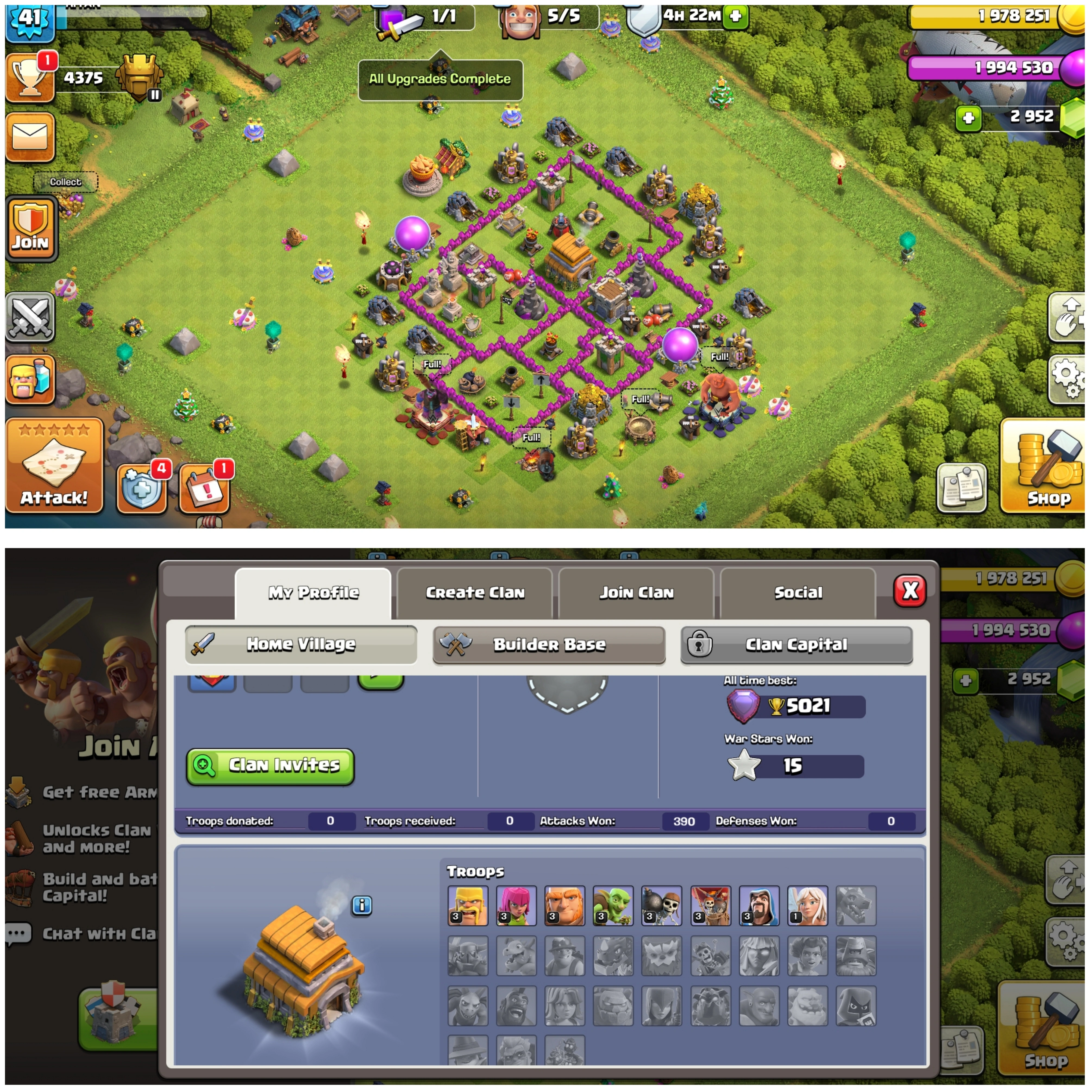 [Spam Obstacles]➤➤Th6 Best Rare Maxed➤➤5th Builders➤➤500 Nc➤➤3007 Gems➤➤Old Legend Profile➤➤Present Unranked➤➤Exp:41