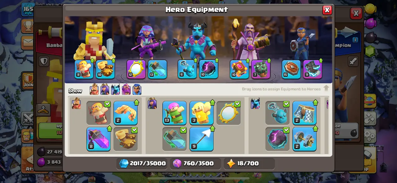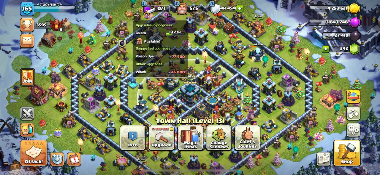 🔥 [TH 13 ALLMOST MAX] 🔥XP 165 [58-75-45-50-25]🔥MAGIC ITEM READY🔥BASIC EQUIPMENTS🔥ALLMOST MAX DEFENSE🔥CHEAPEST🔥NICE SKIN🔥FULL ACCES & GUARANTEED🔥[G170]
