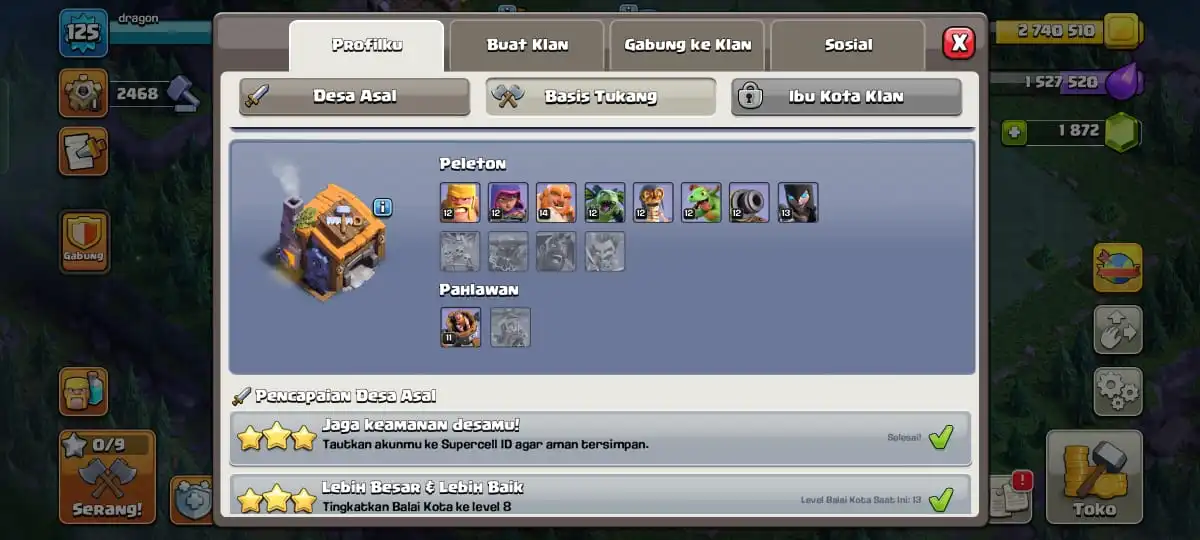 TH 13 XP 125 HEROES 52-53-27-20 🔥 CHANGE NAME FREE 🔥 GEMS 1872 🔥 WALL GOOD 🔥 DEFENSE GOOD 🔥 INSTAN DELIVERY