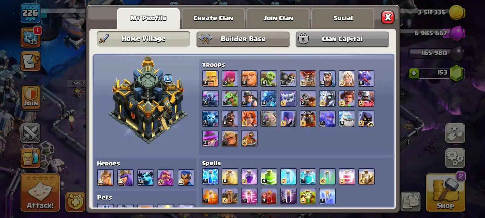 TH 17 MAXED DEFENCE🔥3 EPIC EQUIOMENT MAX🔥HEROES MAX 100-100-64-75-50 FULL EPIC EQUIPMENT🔥MAGIC ITEMS READY🔥SPACE SCENERY🔥FULL ACCESS ACCOUNT🔥