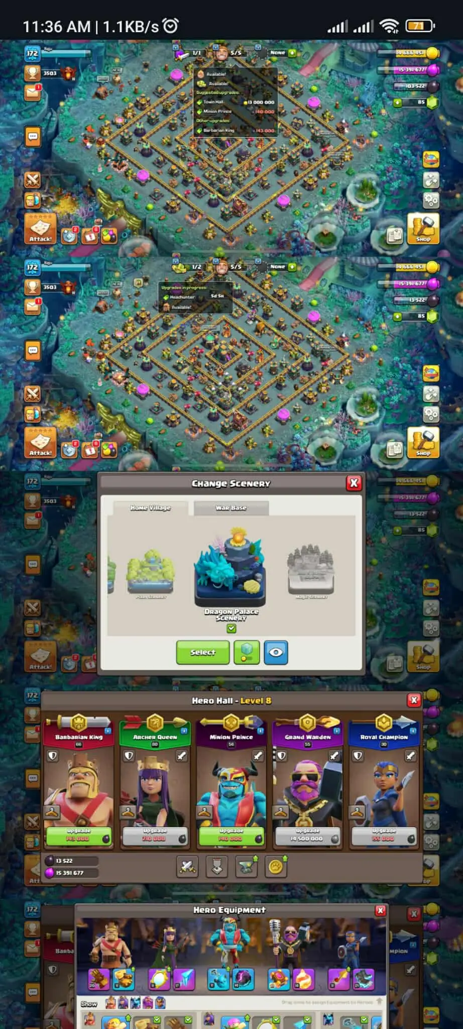 TH14 FULL MAX ID | DRAGON PLACE SCENERY | 6x EPIC | 3 HERO MAX | XP-172 | MAX WALL | HERO: 65-80-55-55-30 | 5 SKIN