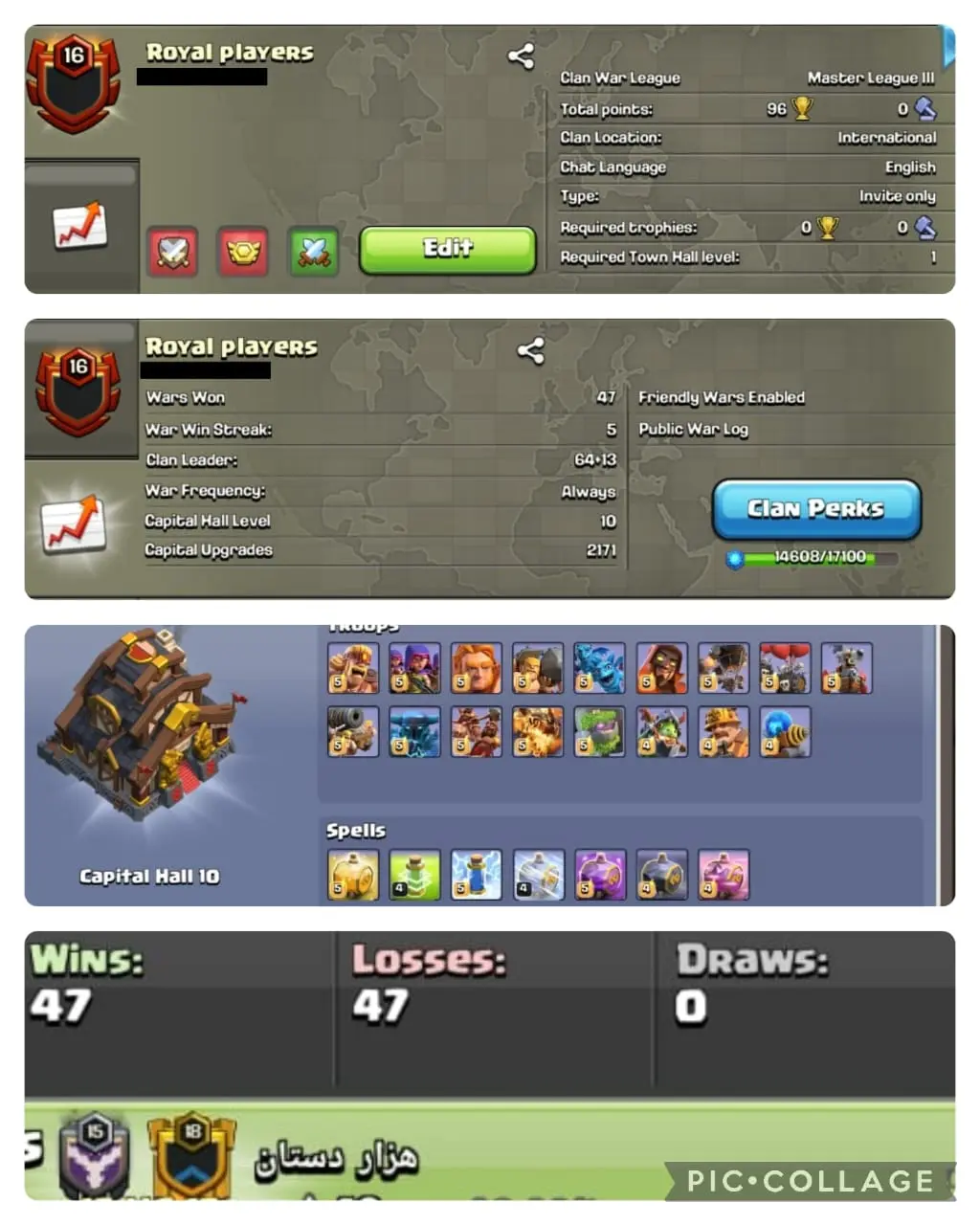 [CC : 10]🔥NAME- Royal players | 💥ALMOST 17 LVL |☠️ WARLOG W-L-D: 47-47-0 | CWL LEAGUE : Master 3🏆 | CC: Almost max10!!⚡⚡