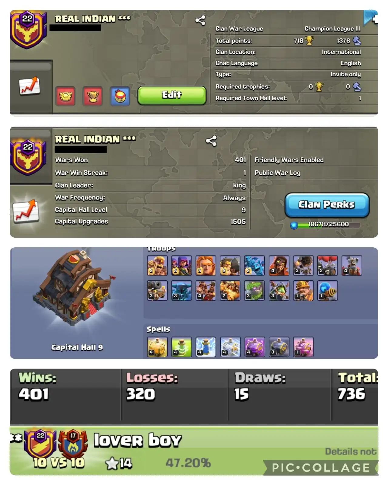 [CHAMP 3]🔥NAME- REAL INDIAN*** | 💥LVL- 22|☠️ WARLOG W-L-D: 401-320-15 | CWL LEAGUE : CHAMP 3🏆 | CC: NEAR 10!!⚡⚡