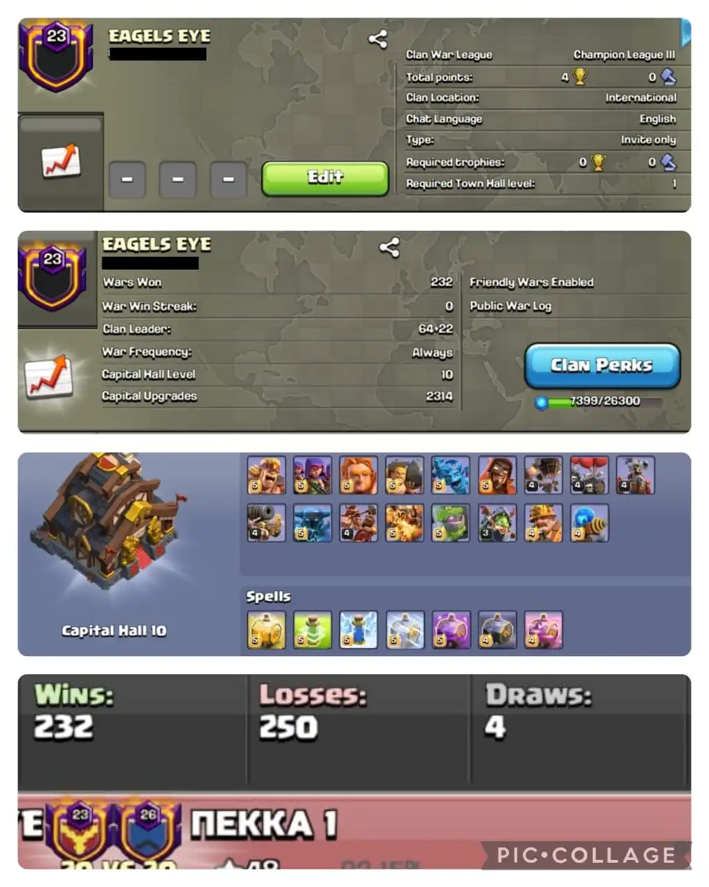 🔥[CHAMP 3 + LVL23]🔥NAME- EAGLES EYE | 💥LVL- 23 |☠️ WARLOG W-L-D: 232-250-4 | CWL LEAGUE : CHAMP 3🏆 | CC: MAX 10!!⚡⚡