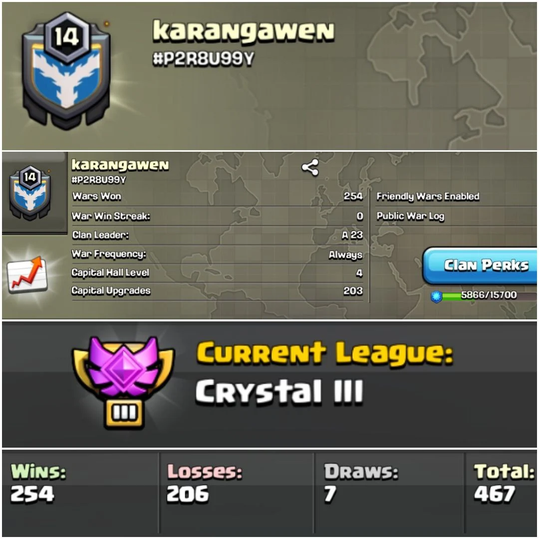 Level 14 | Name - Karangawen | Clan Capital - 4 | Crystal League | Awesome Warlog | Fast Delivery