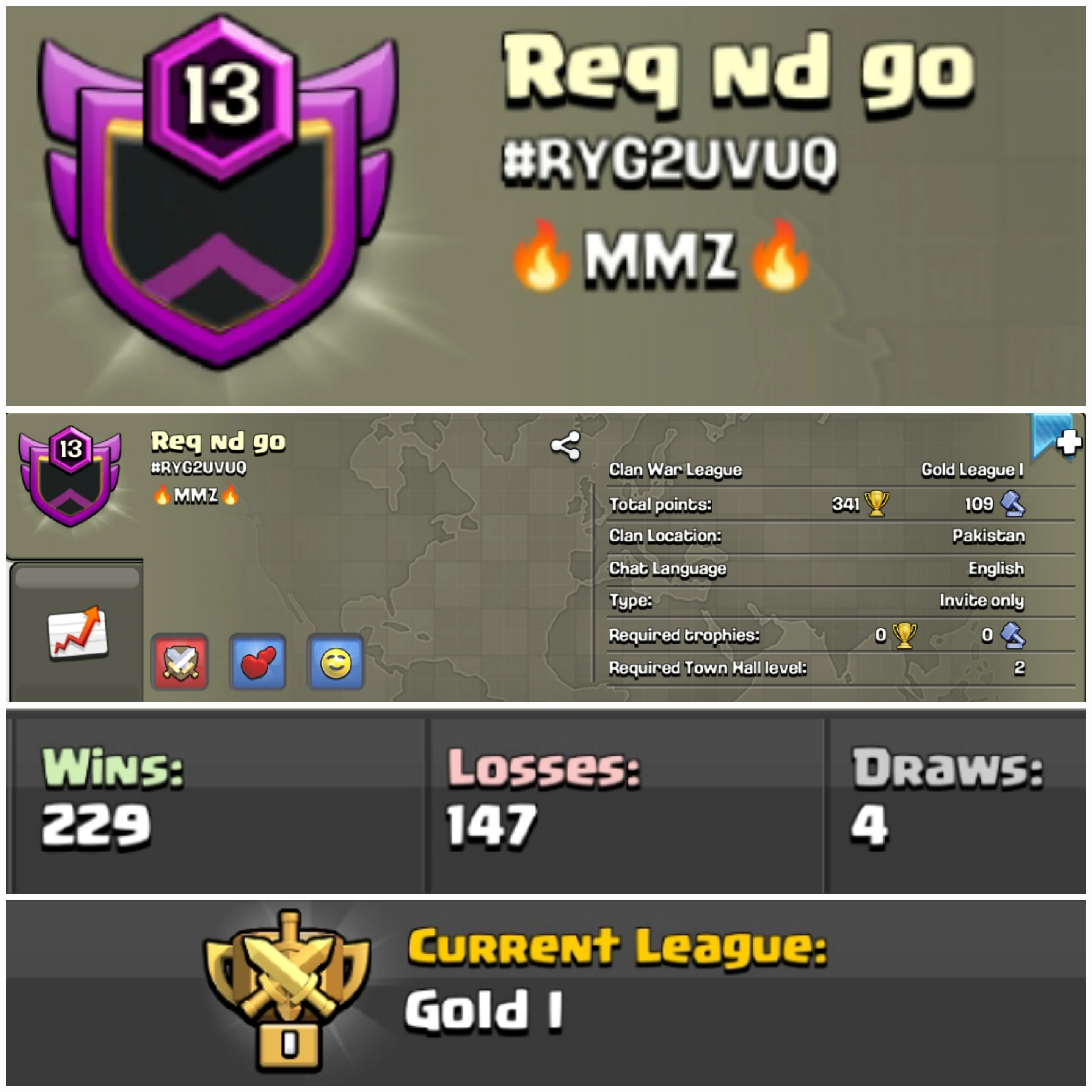 Req nd Go !! LEVEL 13 !! WIN 229 LOSS 147 !! GOLD 1 !! BEST CLAN !! DEMANDING NAME !! AFFORDABLE !! INSTANT DELIVERY