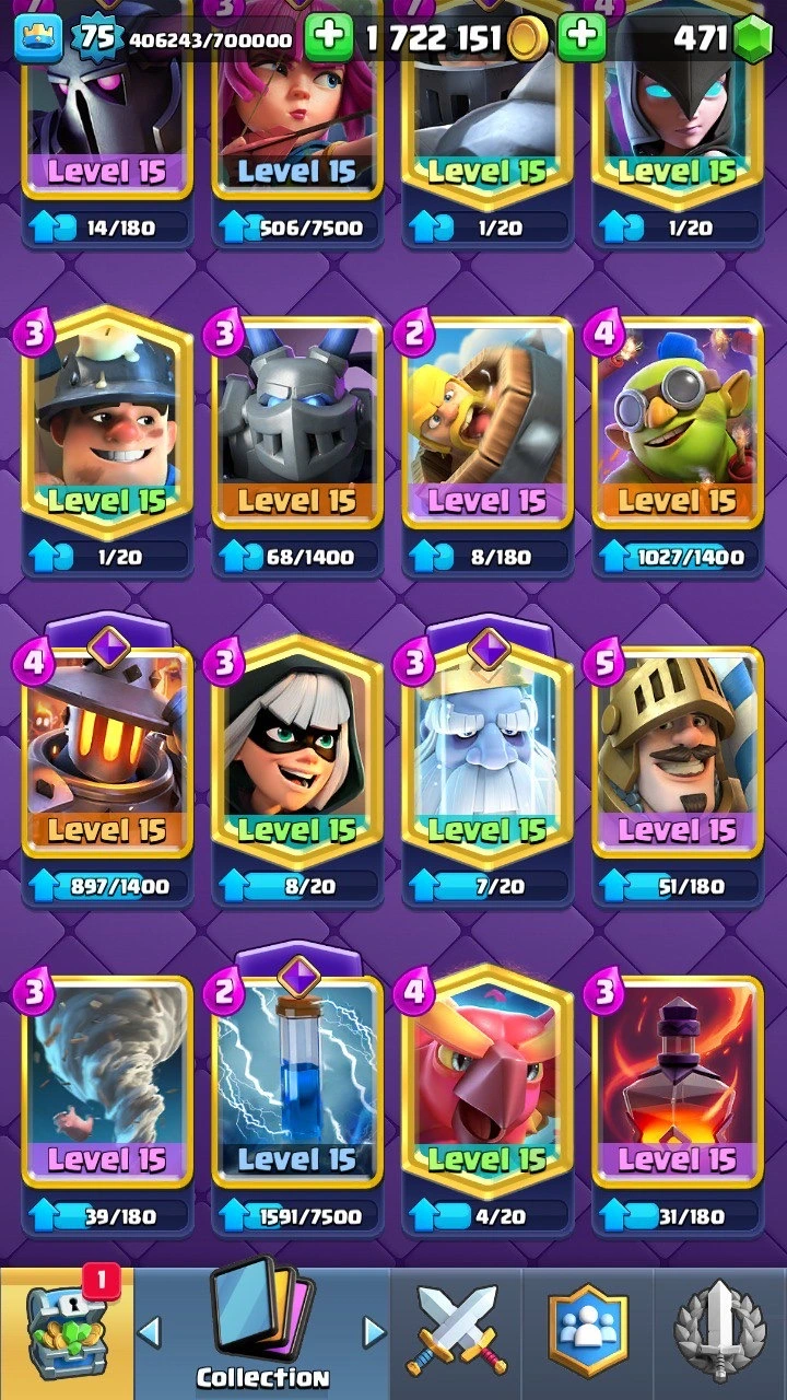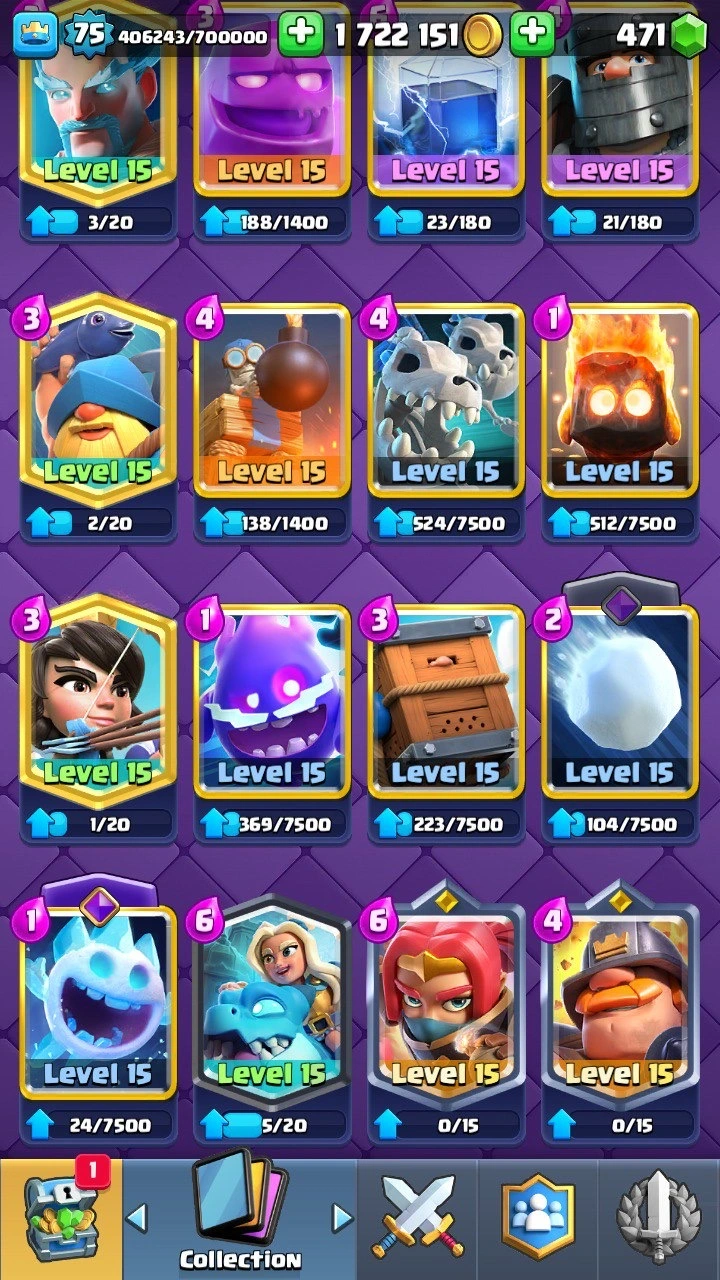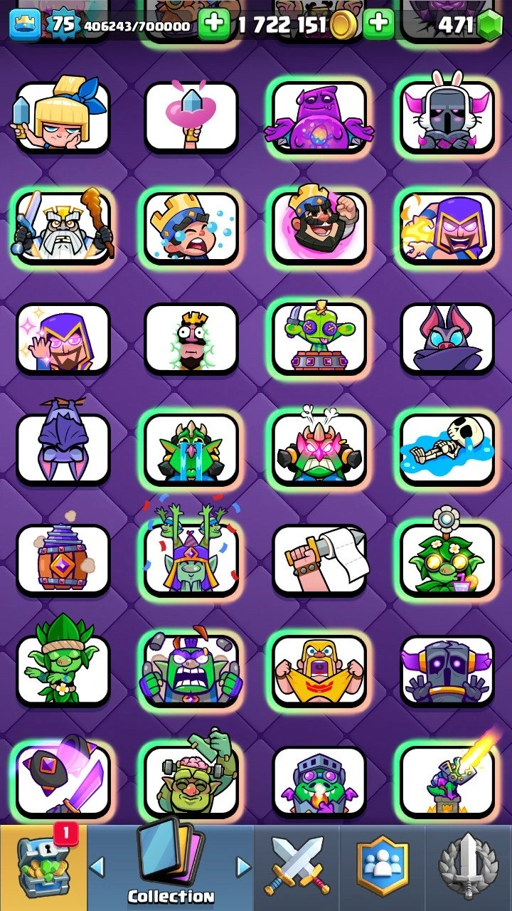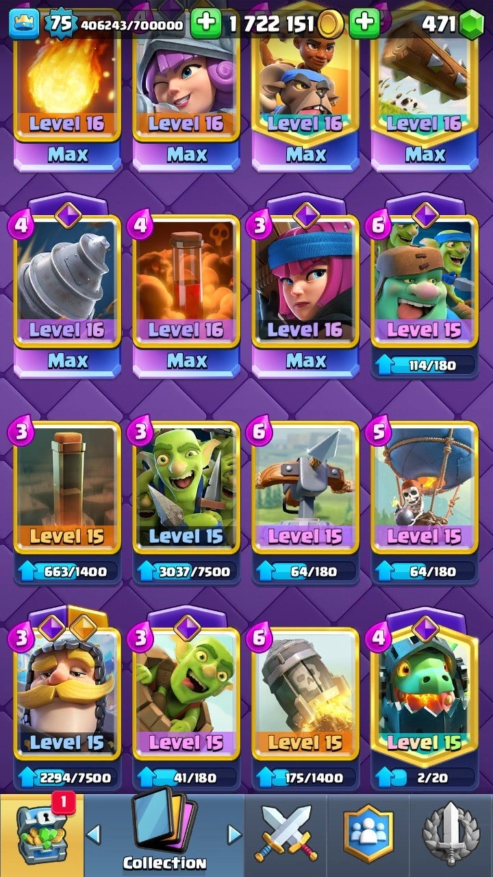 12 000 Trophies 🏆 XP level 75 | Grand Challenge + Classic Challenge Badge | 32 Evolutions 😈 70+ Lvl 15 cards | 11 lvl 16 cards | 127+ emotes