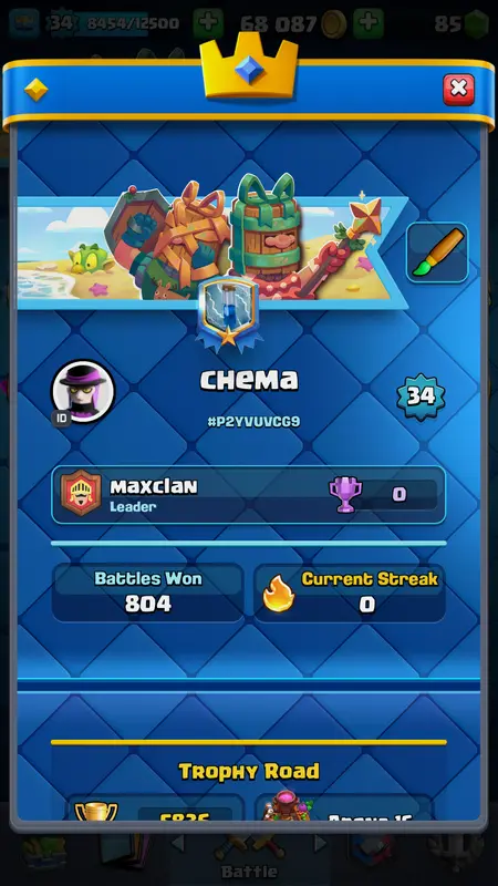 5836 TROPHY 🏆 12 KT 🚀 LVL 34 👑 108 CARDS 🍉 2 MAX CARDS 👑 0 ELITE CARDS ⚡ 13 EMOTE 🚀 EVO 1 🎭 #P2YVUVCG9 ⸱ TAG ACCOUNT ♥️