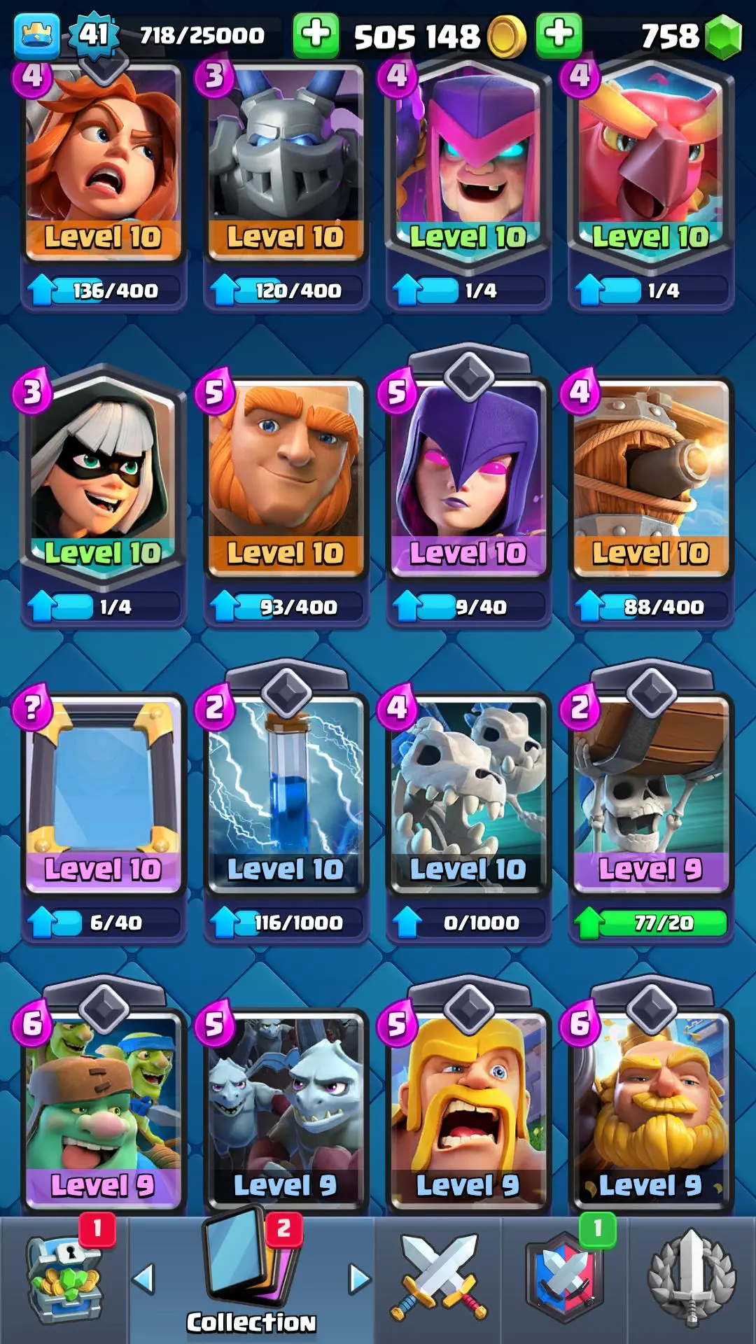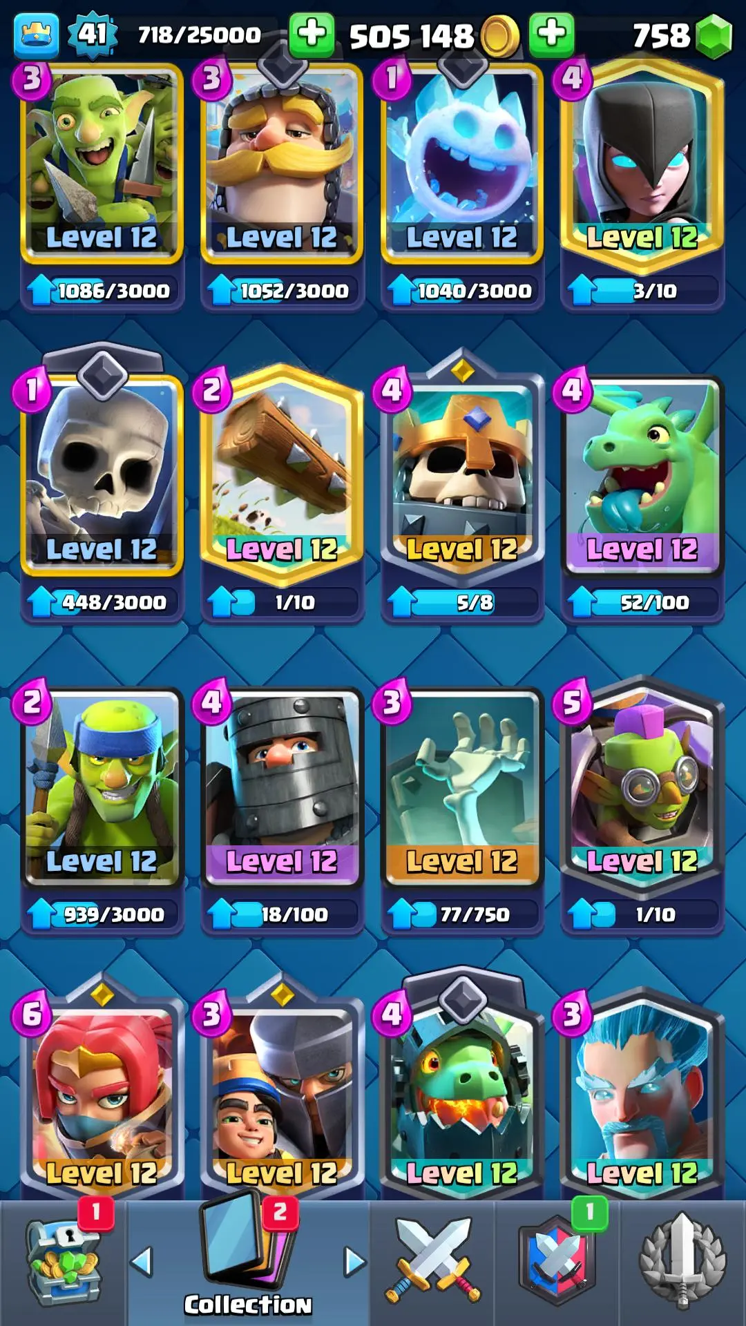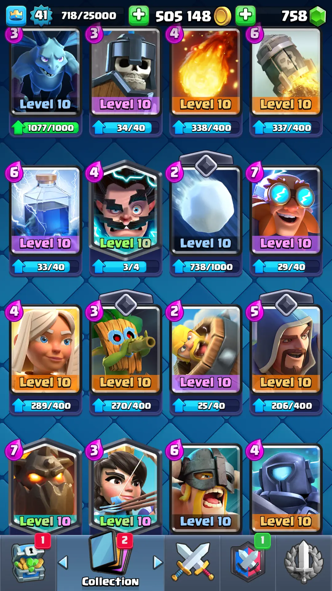 7094 TROPHY 🏆 13 KT 🚀 LVL 41 👑 116 CARDS 🍉 1 MAX CARDS 👑 1 ELITE CARDS ⚡ 18 EMOTE 🚀 EVO 4 🎭 #RP2Q28U0Y ⸱ TAG ACCOUNT ♥️