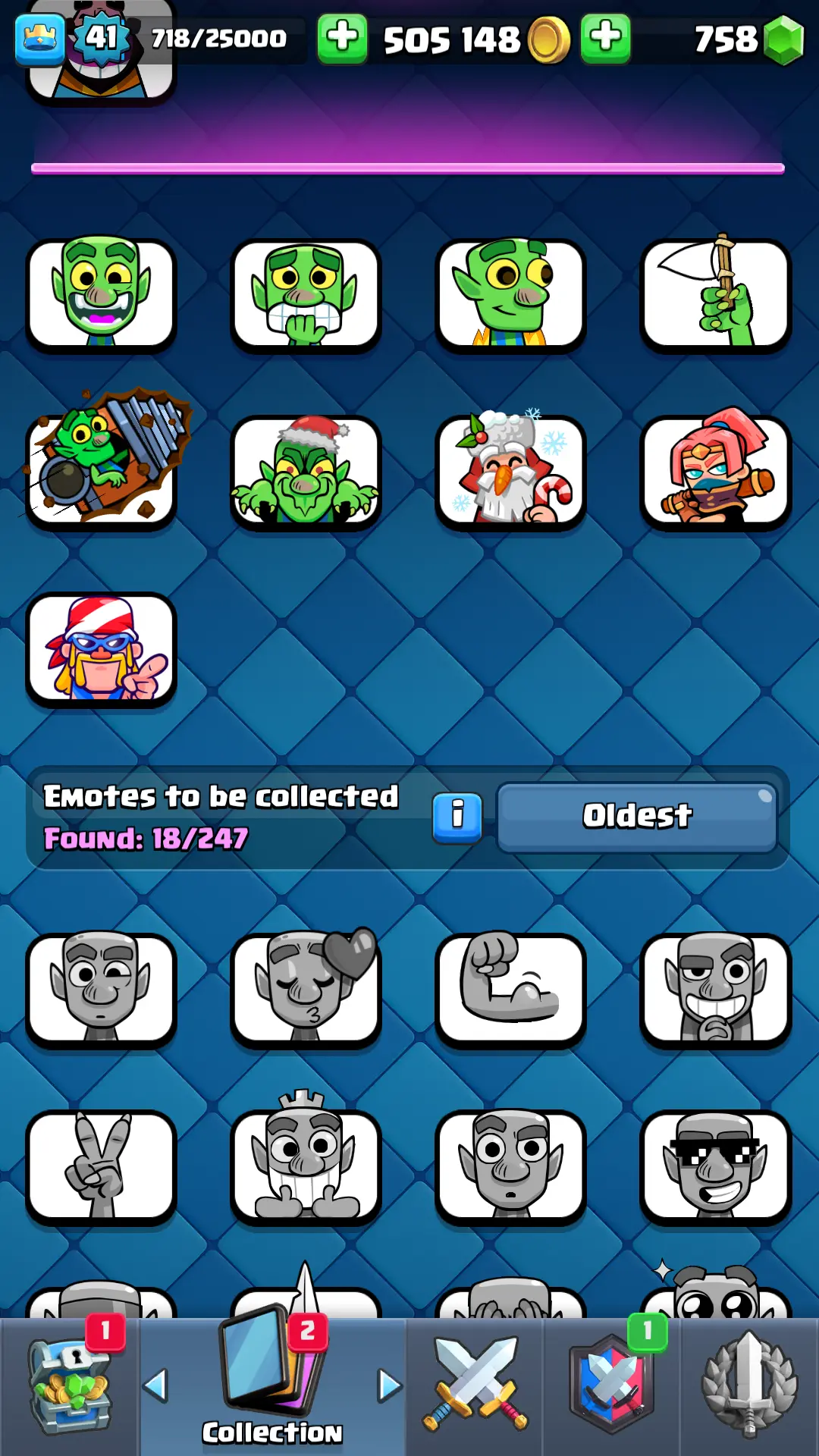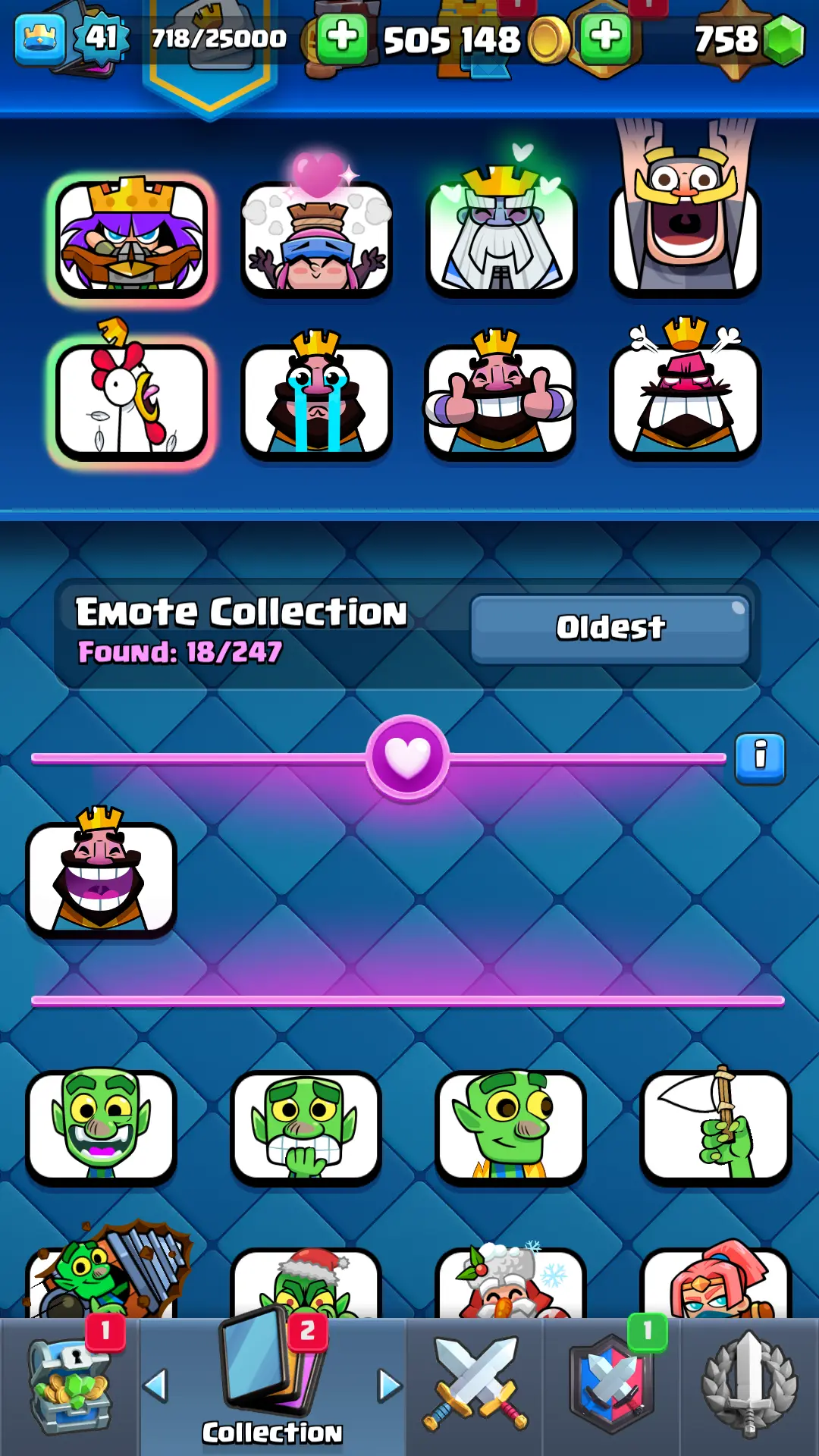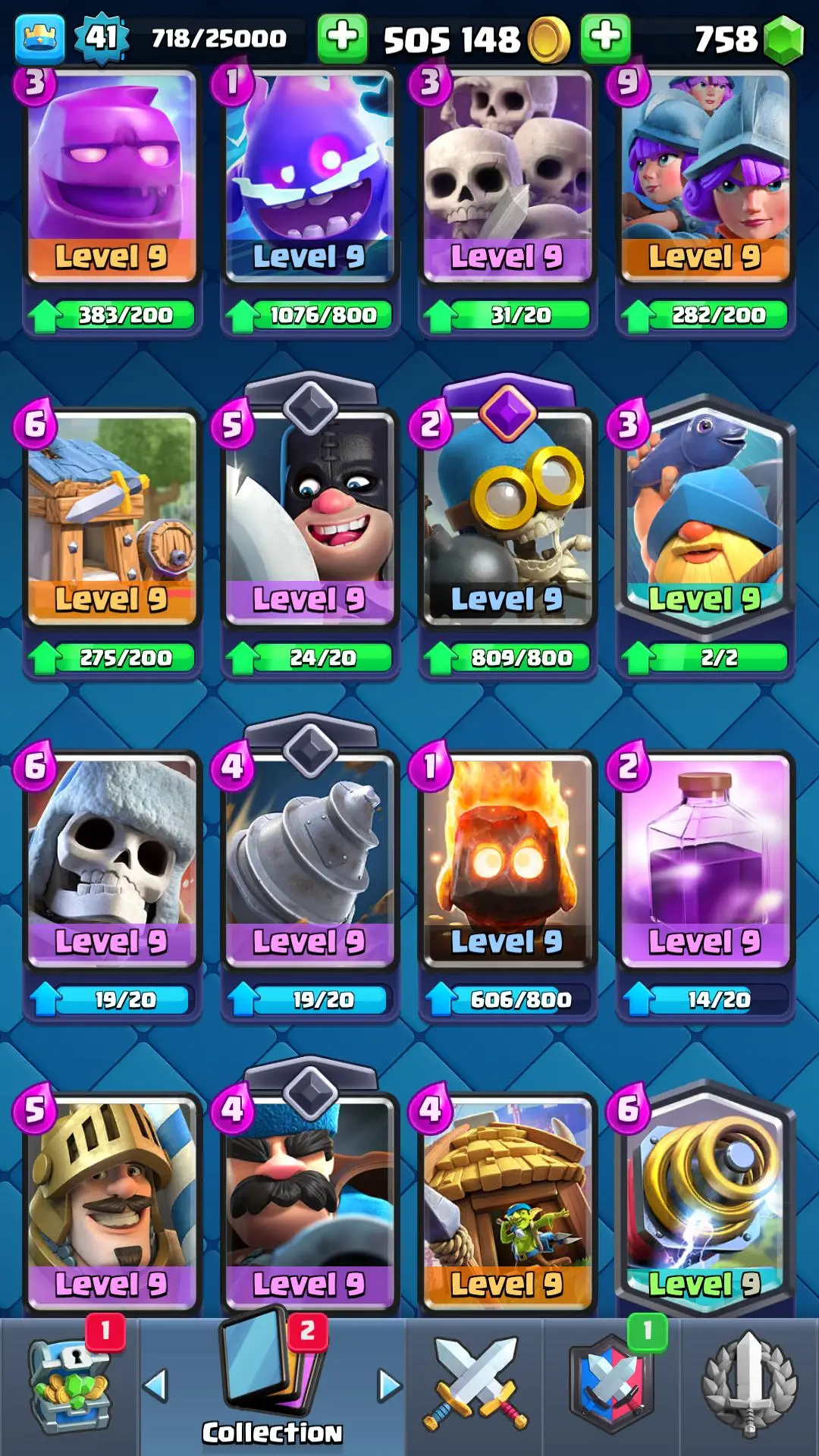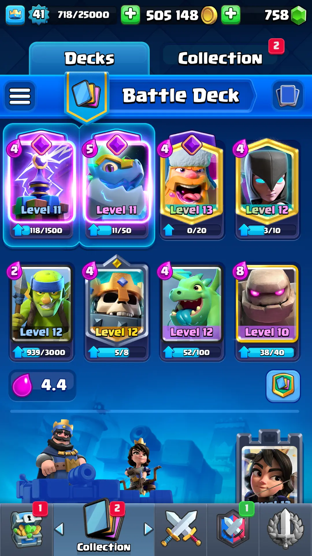7094 TROPHY 🏆 13 KT 🚀 LVL 41 👑 116 CARDS 🍉 1 MAX CARDS 👑 1 ELITE CARDS ⚡ 18 EMOTE 🚀 EVO 4 🎭 #RP2Q28U0Y ⸱ TAG ACCOUNT ♥️