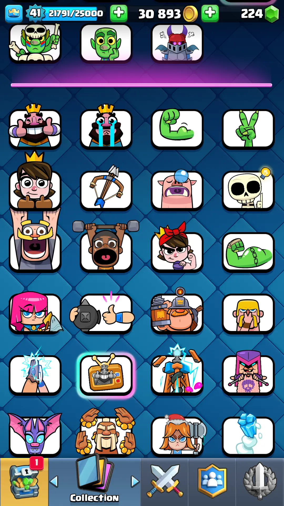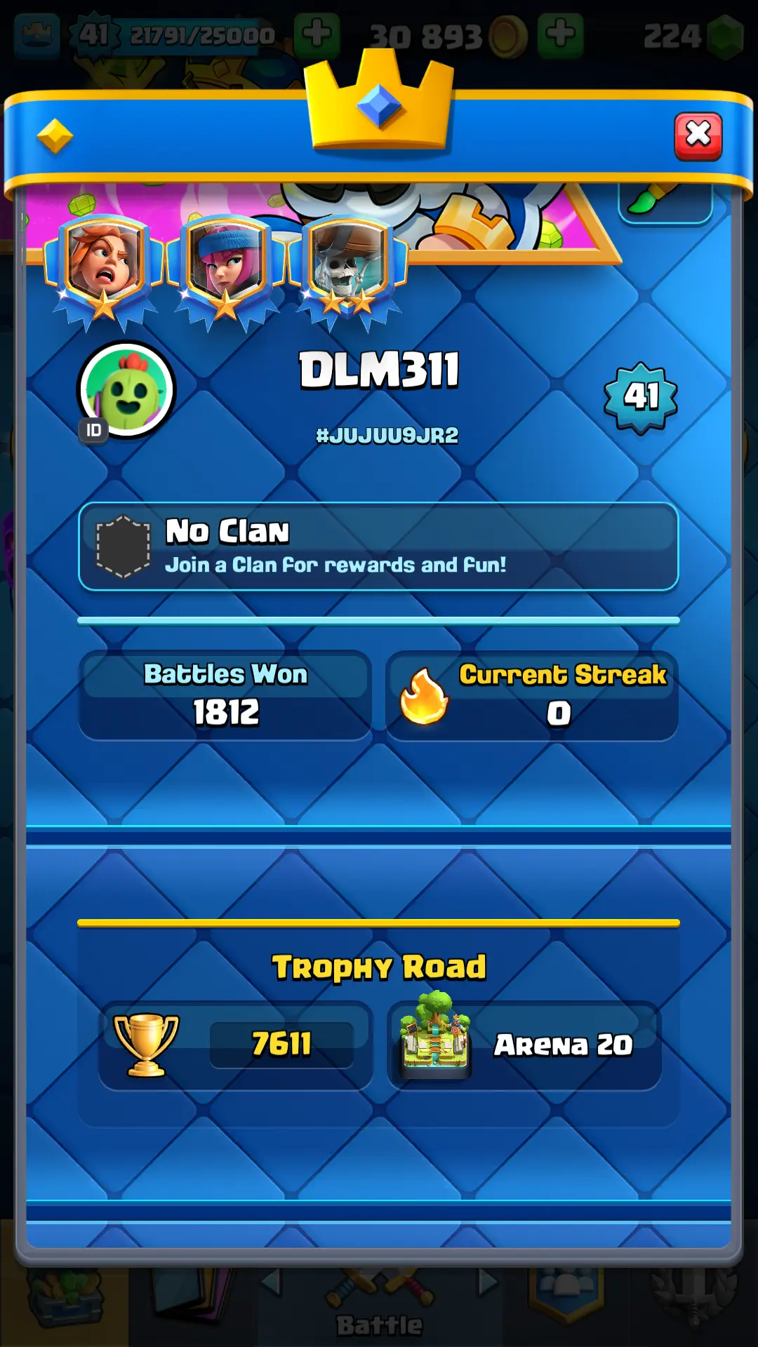 7611 TROPHY 🏆 13 KT 🚀 LVL 41 👑 118 CARDS 🍉 4 MAX CARDS 👑 0 ELITE CARDS ⚡ 54 EMOTE 🚀 EVO 5 🎭 #JUJUU9JR2 ⸱ TAG ACCOUNT ♥️