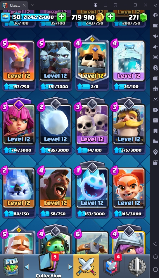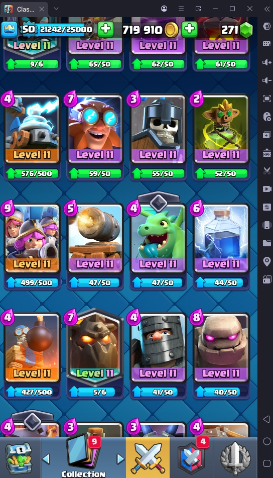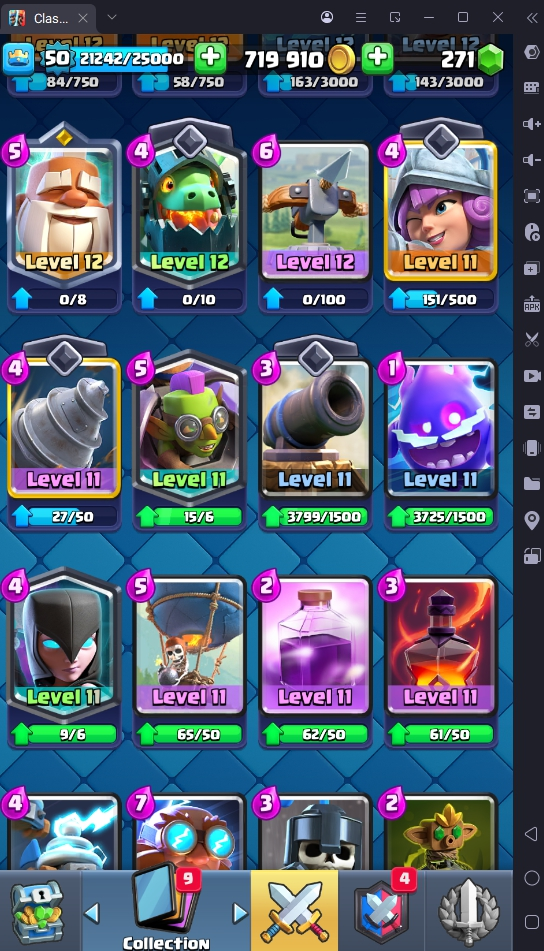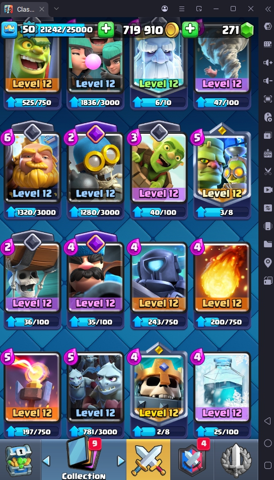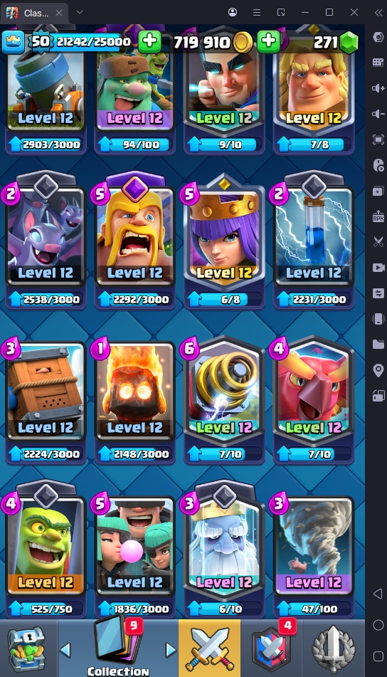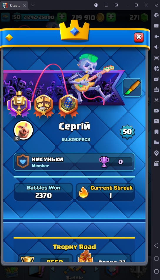 8560 TROPHIES 🏆 50 LVL 💯 KT 14 👑 121 CARDS ♦️ 6 MAX CARDS 👑 3 ELITE CARDS 🔮 13 EVO 💎 EMOTE 67 🎭 #UJG90PRC8 ⸱ TAG ACCOUNT ⚙️ LEGENDARY ARENA • 9000 TROPHIES 💎