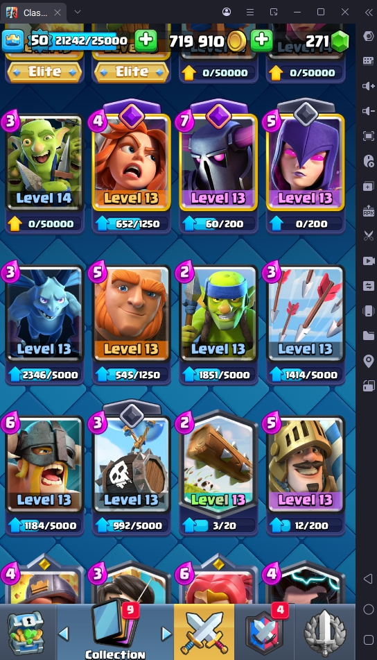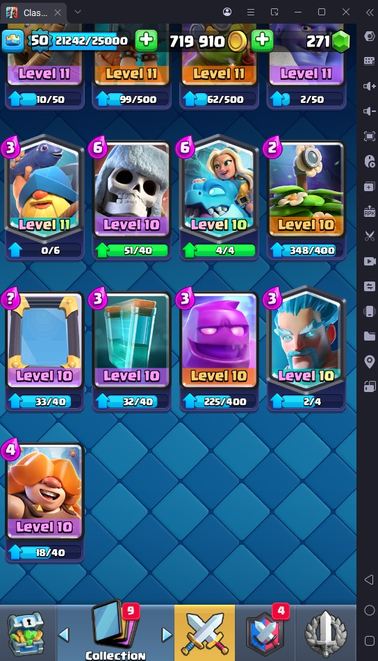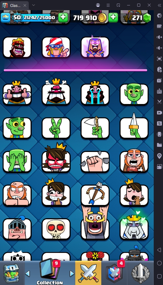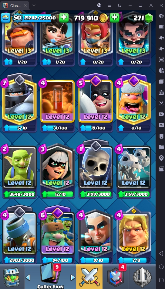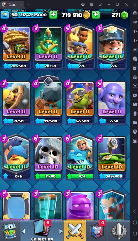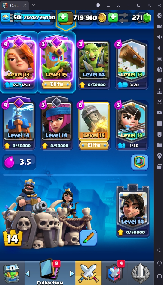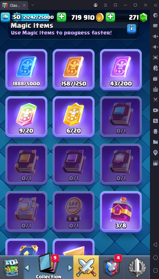 8560 TROPHIES 🏆 50 LVL 💯 KT 14 👑 121 CARDS ♦️ 6 MAX CARDS 👑 3 ELITE CARDS 🔮 13 EVO 💎 EMOTE 67 🎭 #UJG90PRC8 ⸱ TAG ACCOUNT ⚙️ LEGENDARY ARENA • 9000 TROPHIES 💎