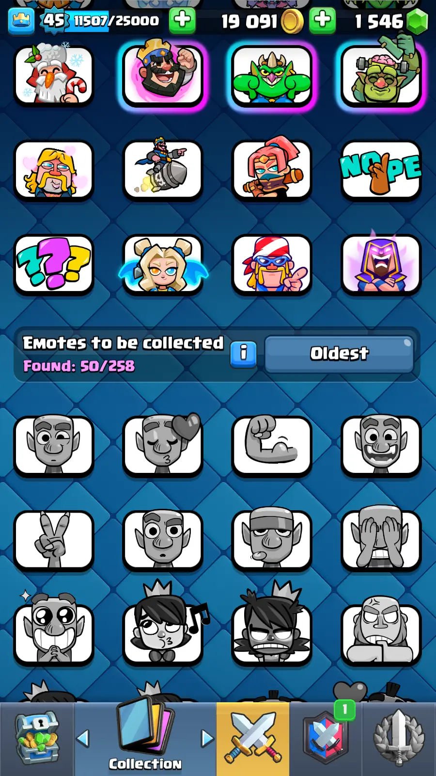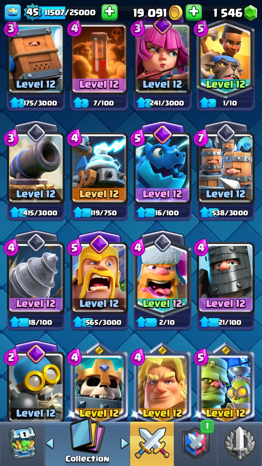 8585 TROPHY 🏆 14 KT 🚀 LVL 45 👑 120 CARDS 🍉 4 MAX CARDS 👑 1 ELITE CARDS ⚡ 50 EMOTE 🚀 EVO 9 🎭 #8V2Y2QQCY ⸱ TAG ACCOUNT ♥️