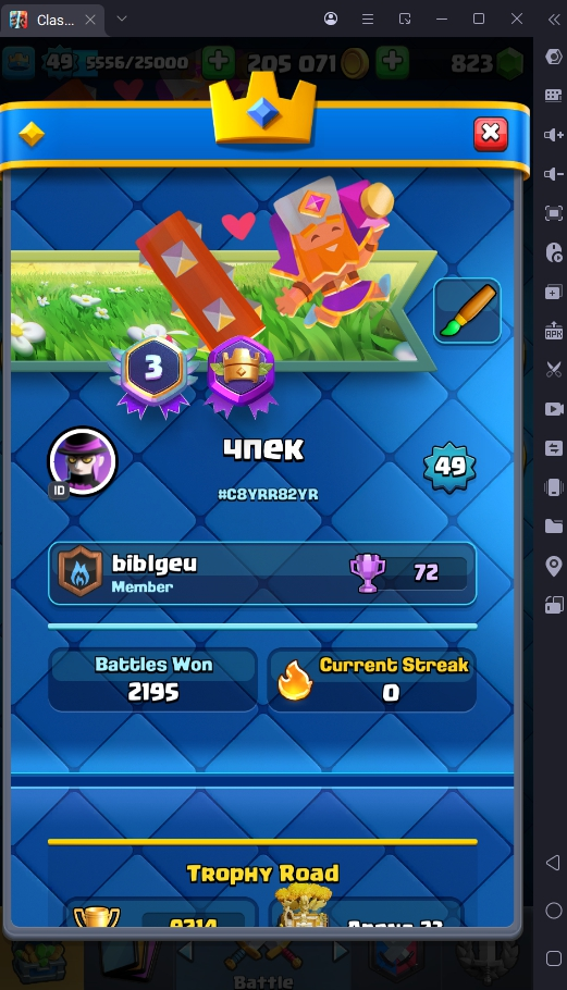 9214 TROPHY 🏆 49 LVL 💯 KT 14 👑 120 CARDS ♦️ 10 MAX CARDS 👑 3 ELITE CARDS 🔮 11 EVO 💯 EMOTE 42 🎭 #C8YRR82YR ⸱ TAG ACCOUNT ♥️