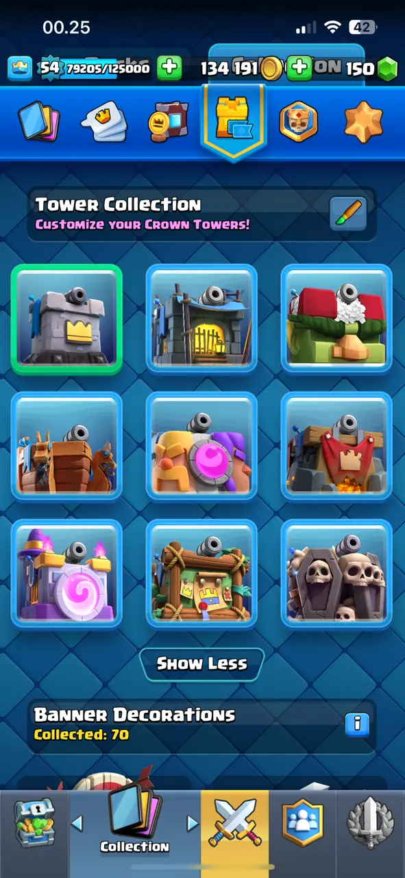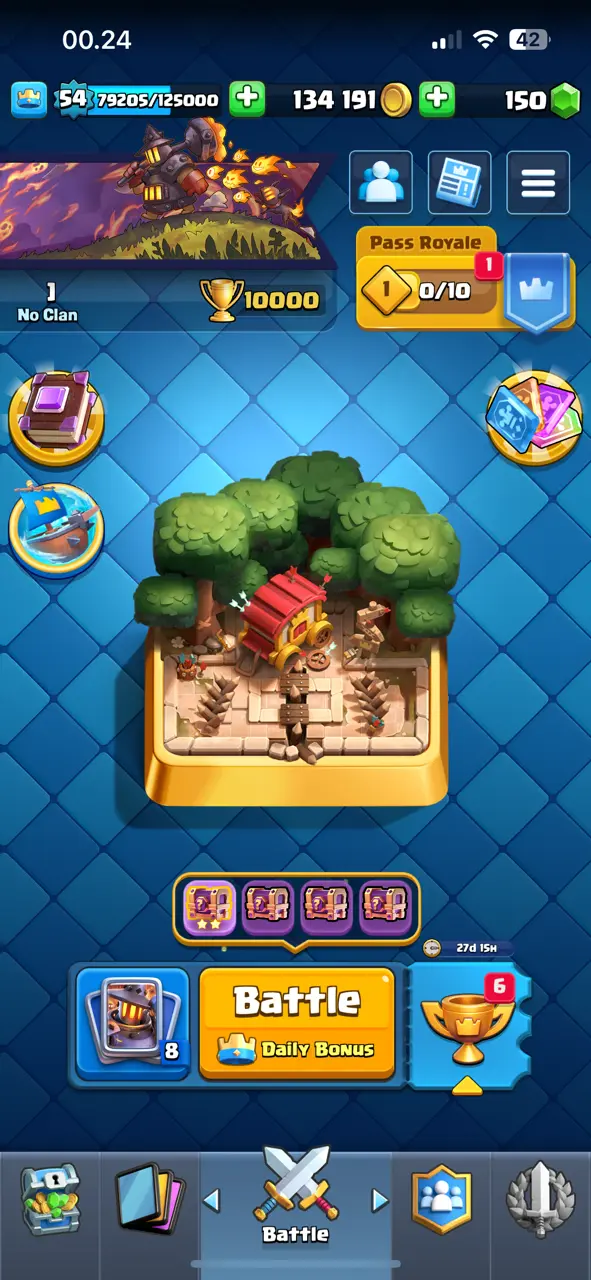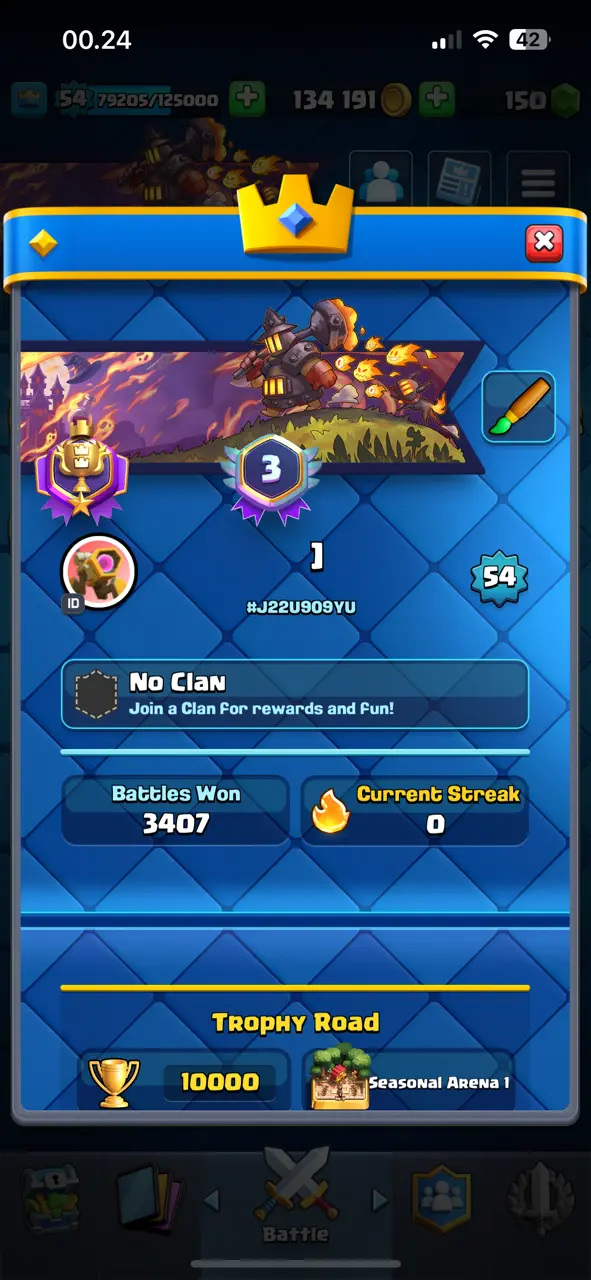 🔥 Awesome 🔥 CR Lv.54 🔥 Seasonal Arena 1 🔥 10000 Trophies 🔥 KT 15 🔥 14 Evo Cards 🔥 34 Max Cards & 5 Elites 🔥 98 Emotes 🔥 9 Tower Skins 🔥 [F2796] 🔥