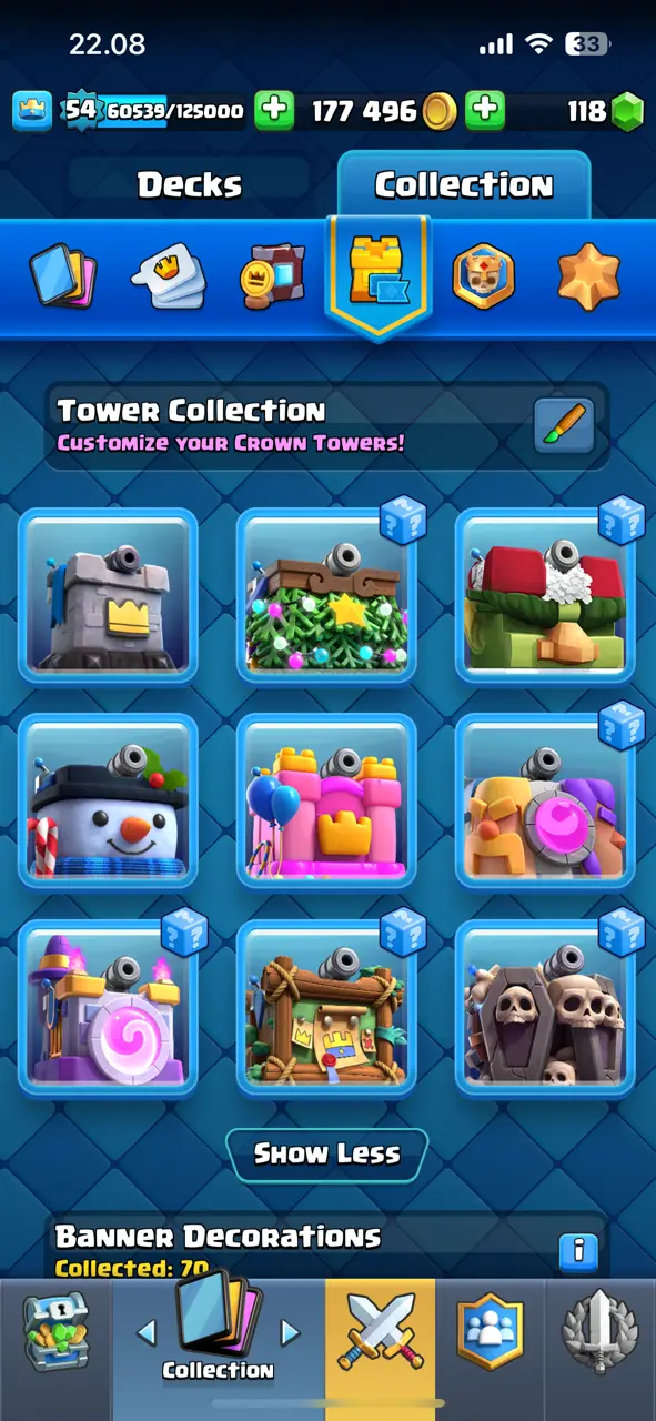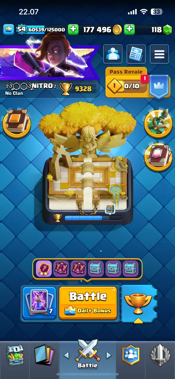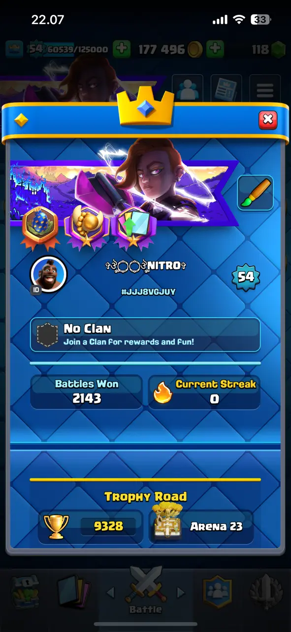 🔥 [CHEAPEST] 🔥 CR Lv.54 🔥Arena 23🔥9328 Trophy🔥KT 15🔥10 Evo Cards🔥15 Max Cards & 8 Elite🔥81 Emotes🔥9 Tower Skins🔥Full Acces & Guaranteed🔥[F2183]🔥