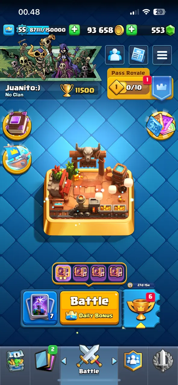 🔥 CHEAPEST 🔥 CR Lv.55 🔥 8 Years Played 🔥 Seasonal Arena 1 🔥 11500 Trophies 🔥 KT 15 🔥 13 Evo Cards 🔥 31 Max Cards & 7 Elites 🔥 74 Emotes 🔥 9 Tower Skins 🔥 [F2799] 🔥