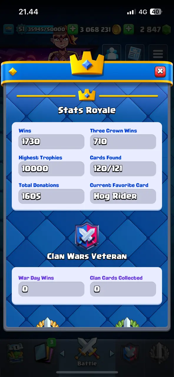 🔥 Combo CR+BS 36 Max 🔥 CR Lv.51 🔥 Free Change Name 🔥 Seasonal Arena 1 🔥 10605 Trophies 🔥 KT 14 🔥 11 Evo Cards 🔥 11 Max Cards & 3 Elites 🔥 83 Emotes 🔥 7 Tower Skins 🔥 [F2737] 🔥