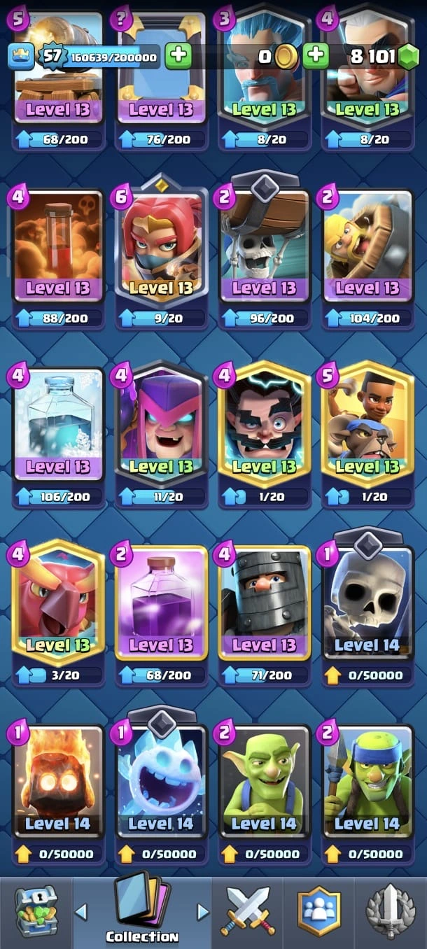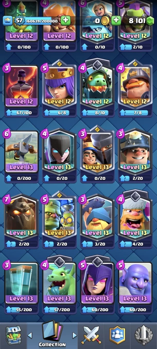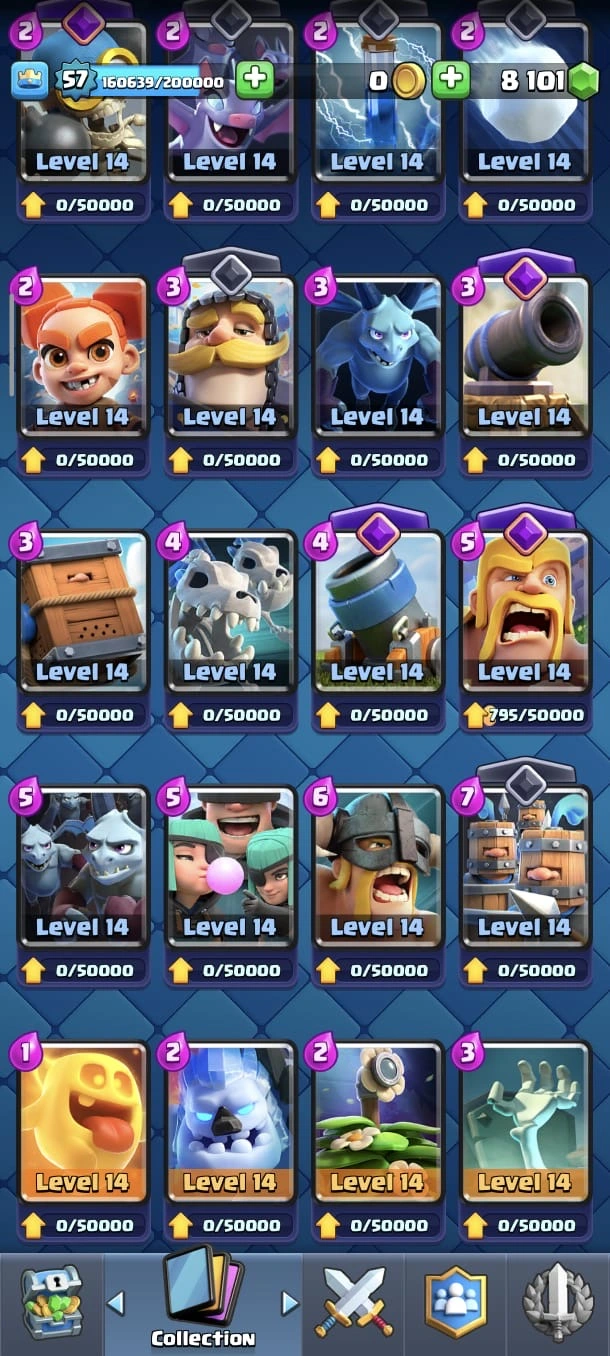 CR LV 57 🔥 Max Cards 83 🔥 Evo 19 🔥 Elite 11 🔥 Trophy 9803 🔥 Gems 8k + 🔥 Change name on🔥 Best price 🔥