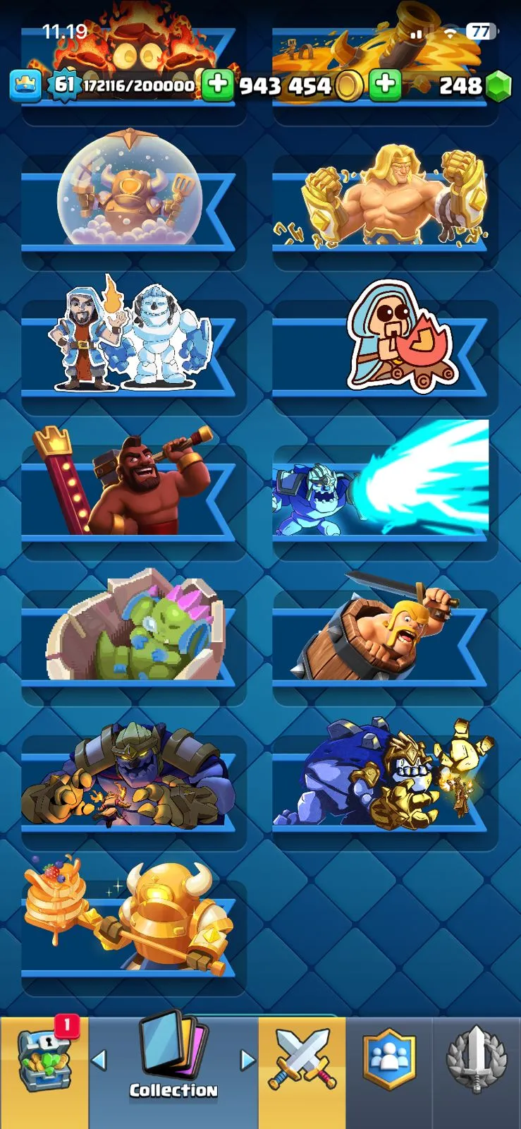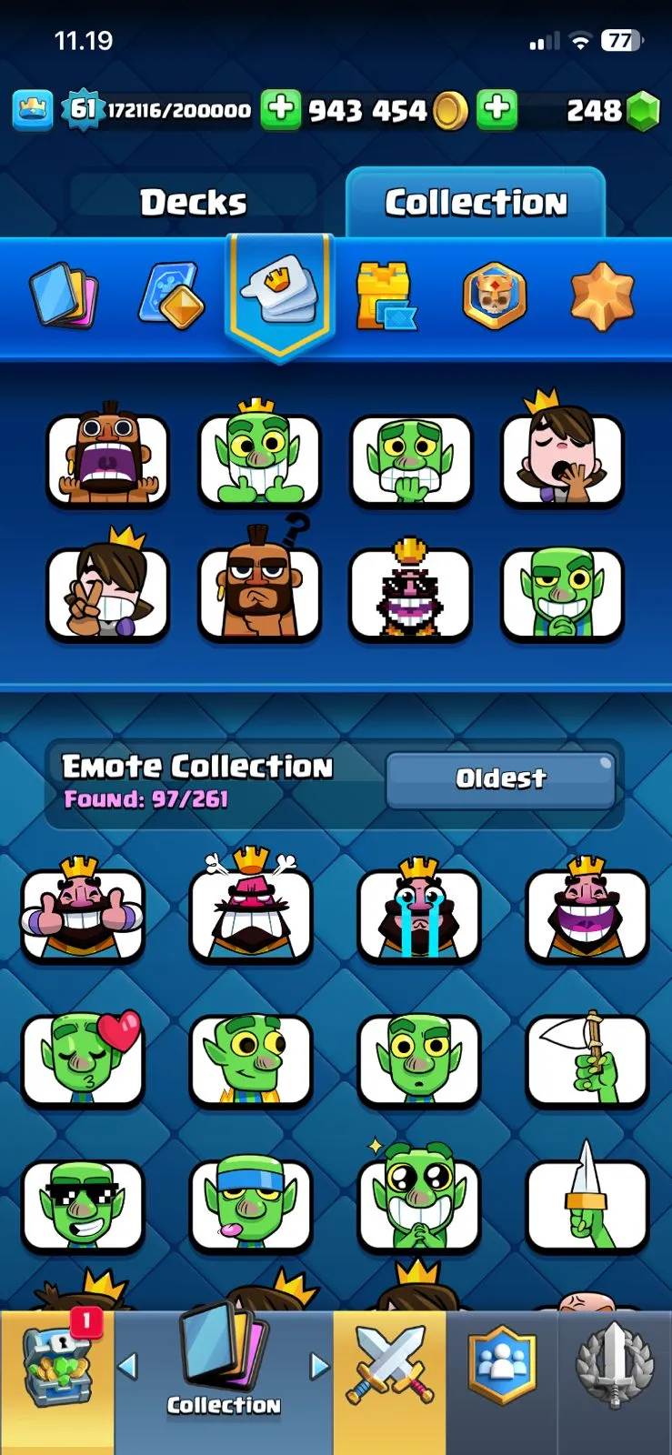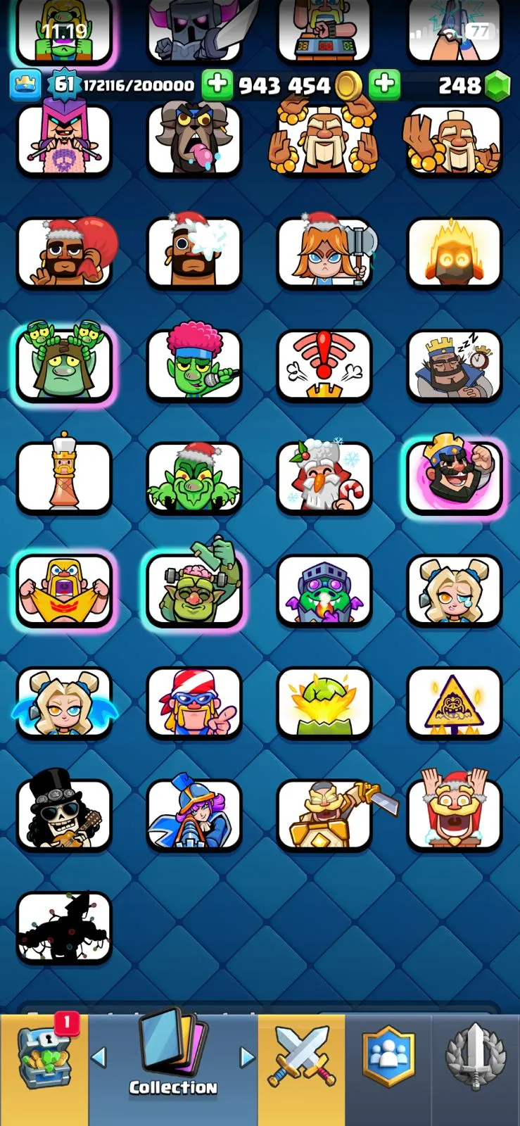 CR LV 61🔥ARENA 27🔥TROPHY 11260🔥EMOTE 97🔥SKINS TOWER 7🔥FULL ACCESS ACCOUNT🔥