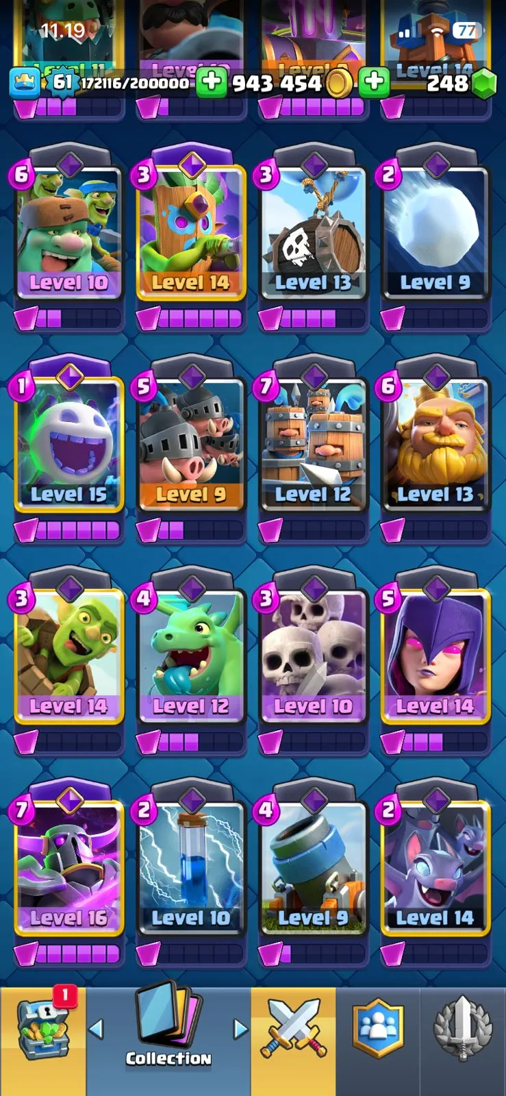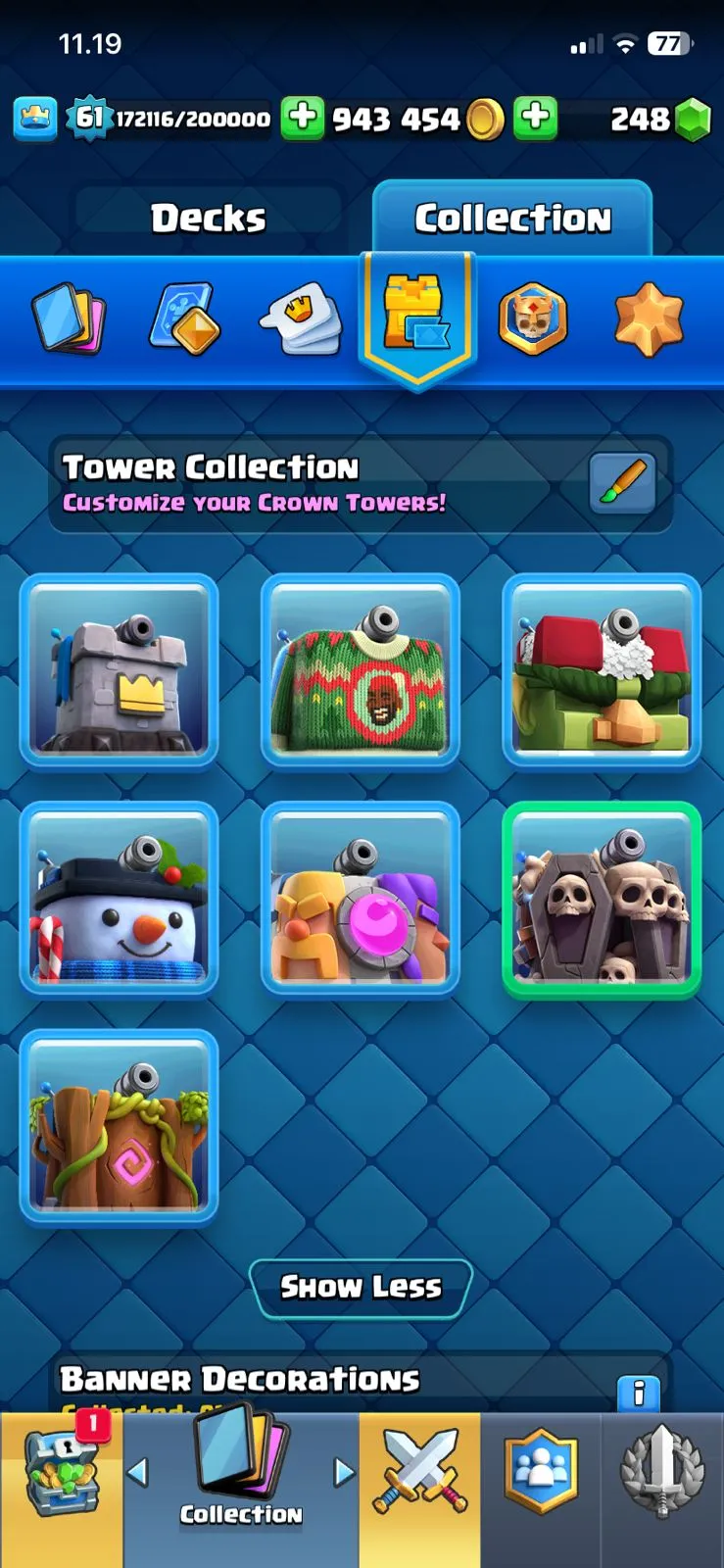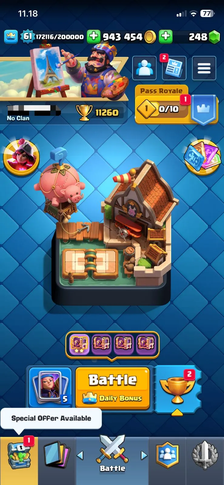 CR LV 61🔥ARENA 27🔥TROPHY 11260🔥EMOTE 97🔥SKINS TOWER 7🔥FULL ACCESS ACCOUNT🔥