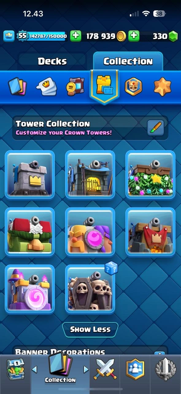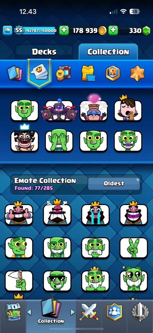CR XP 55🔥KT15🔥10 Elite🔥24 Max Card🔥10 Evo🔥77 emotes🔥7 Skins Tower🔥Acces Full🔥Cheapest and Safe Account