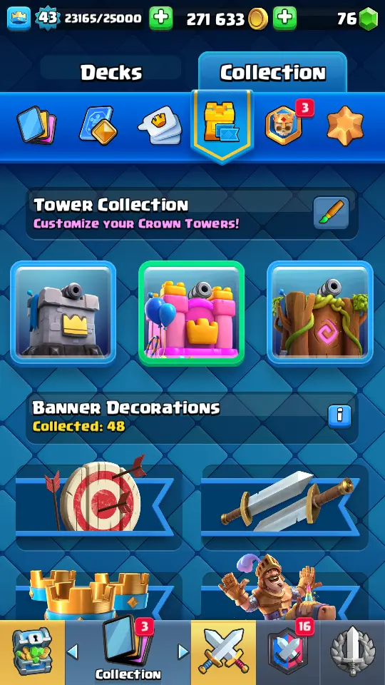 👑 King Tower 14 🏆 7780 Trophies ⚔️ Level 43 💎 Gems: 76 🧬 Evolutions: 10 🔒 Recovery Codes