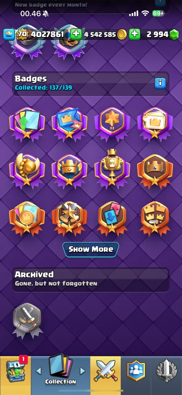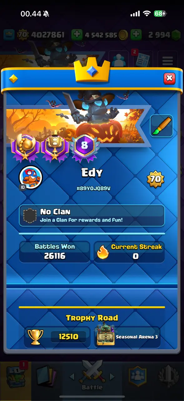 🔥[Last Offer]🔥CR Lv.70 [Max]🔥Seasonal Arena 3🔥12510 Trophy🔥KT 15🔥93 Elite & 121 Max Card🔥24 Evo Card🔥250 Emotes🔥18 Tower Skins🔥Free Change Name🔥Free Brawl Stars 49K Cups🔥Full Acces & Guaranteed🔥