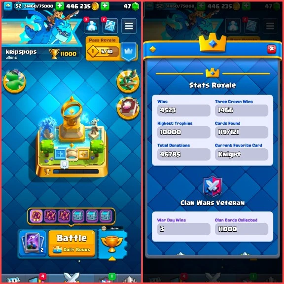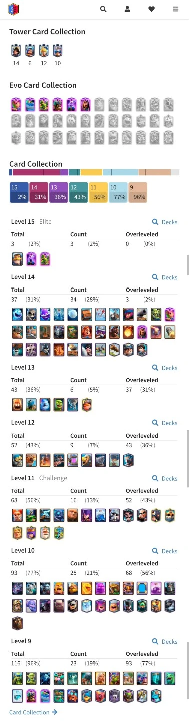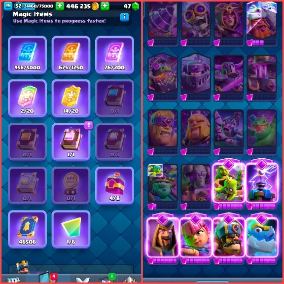 Level 52 : KT 14 | 11k Trophies, 119 Cards Unlock, Bulk Magic items {6 Evolution, 34 Cards Max Level 14 & 3 Level 15} 8 Years Played CH365