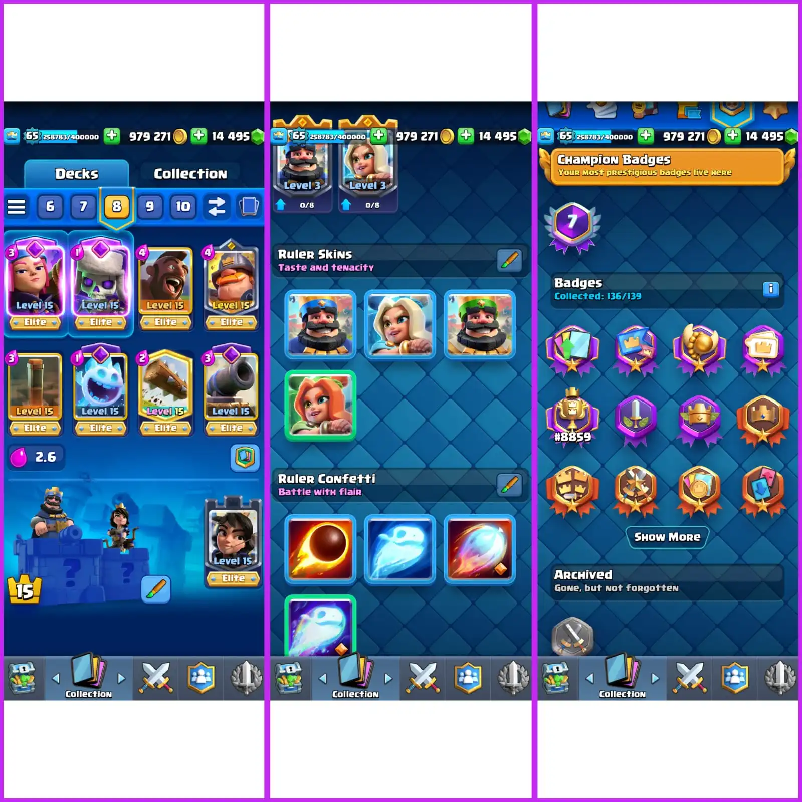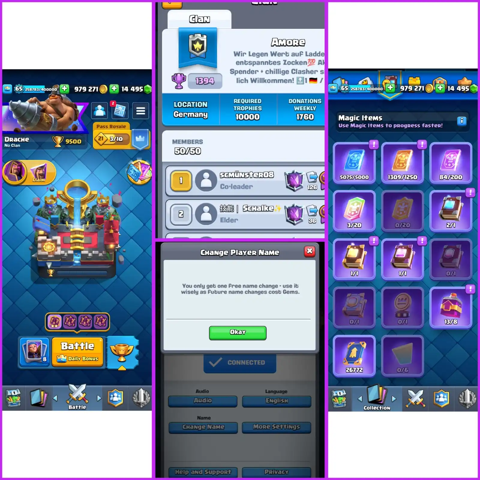 Premium ✨| Germany Local | 32 Evolution 🔥| Level 65 |✨ 53 elite cards |✨(53 LvL 15)and (117 lvl 14 max card) |✨15k gems | 155+ Rare Emotes Collections|🔥|2022 Spectators badge 📛Free NC | 27 Tower Skins | 9500 Trophy