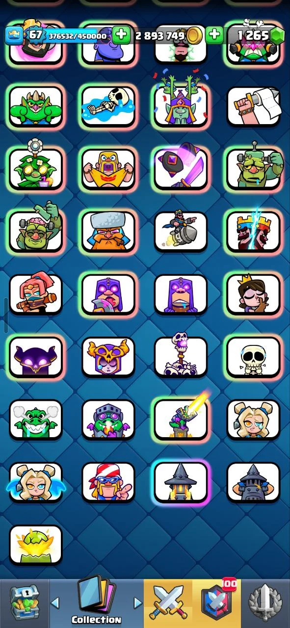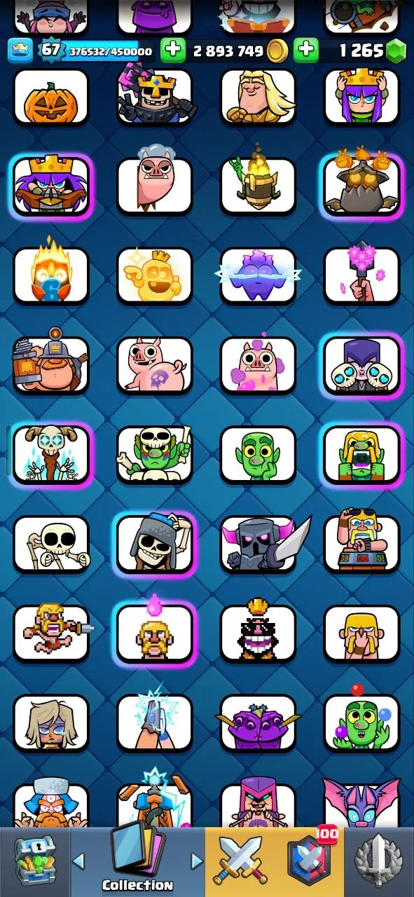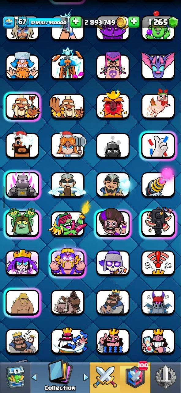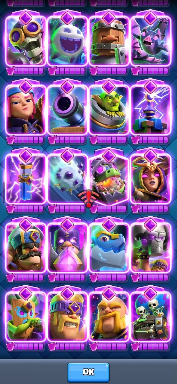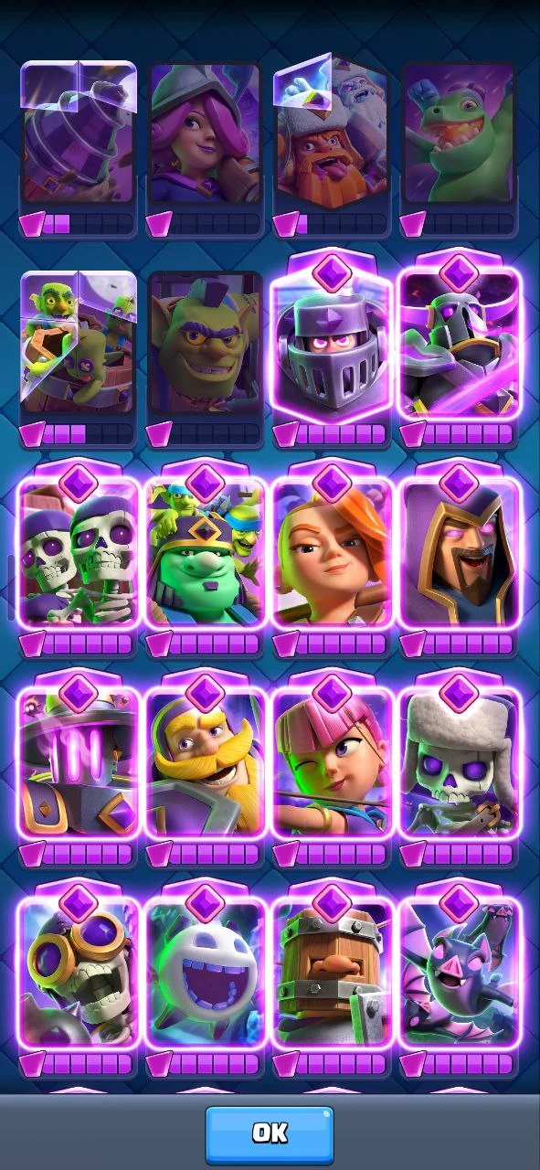 ✨️ (RAREST) 💎 30 EVOLUTIONS 😈 ALL 121 CARDS MAXED 🐉 70 ELITE 💪 CHAMPION KING 👑 CRYING GHOST 👻 RAINBOW PRINCE 🌈 GRASS EATING RAM 🐏 LNY HOG 💰 PEKKA BALLOON 🎈 ANNIVERSARY HEALER 🎂 CHRISTMAS HOG ☃️ EMPEROR KING ❄️ MAGIC ARCHER 🏹 67 XP 🎯 35 TOWER SKINS 🔥