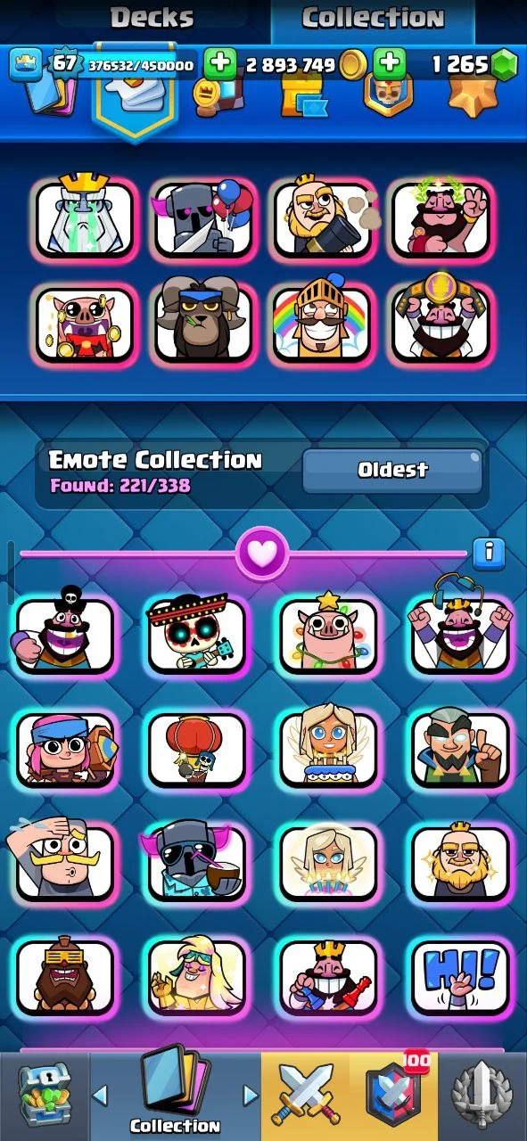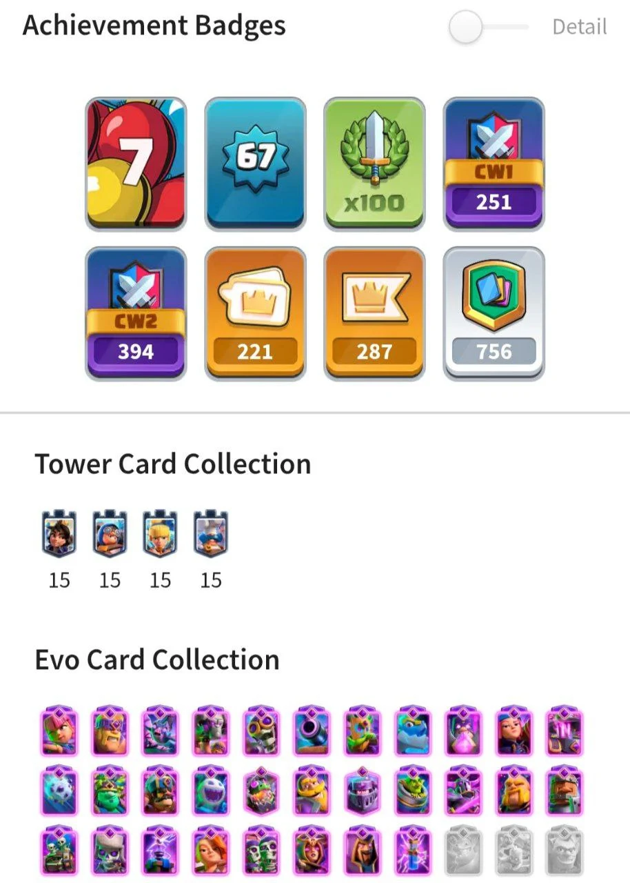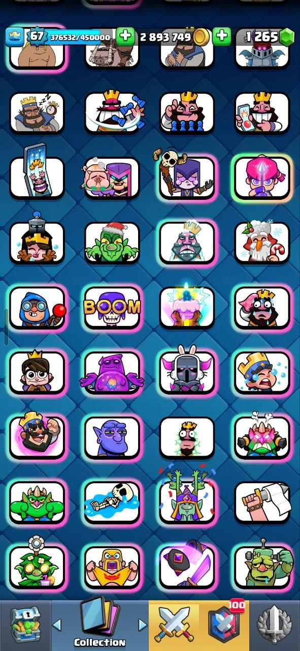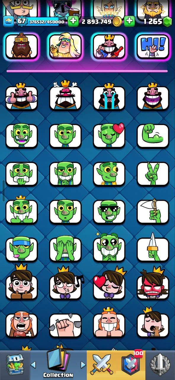 ✨️ (RAREST) 💎 30 EVOLUTIONS 😈 ALL 121 CARDS MAXED 🐉 70 ELITE 💪 CHAMPION KING 👑 CRYING GHOST 👻 RAINBOW PRINCE 🌈 GRASS EATING RAM 🐏 LNY HOG 💰 PEKKA BALLOON 🎈 ANNIVERSARY HEALER 🎂 CHRISTMAS HOG ☃️ EMPEROR KING ❄️ MAGIC ARCHER 🏹 67 XP 🎯 35 TOWER SKINS 🔥