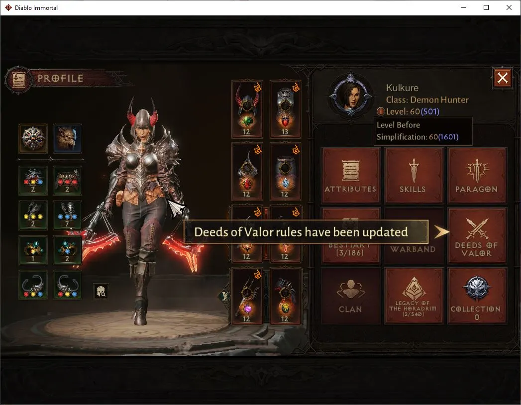 NA-High Heaven|CS ON|Lv60(501)|Demon Hunter|CR 33k|Reso 420|Paragon Maledictor|Inferno I|Hell Lv 21|Cosmetic 1|Check SS(DI1203)