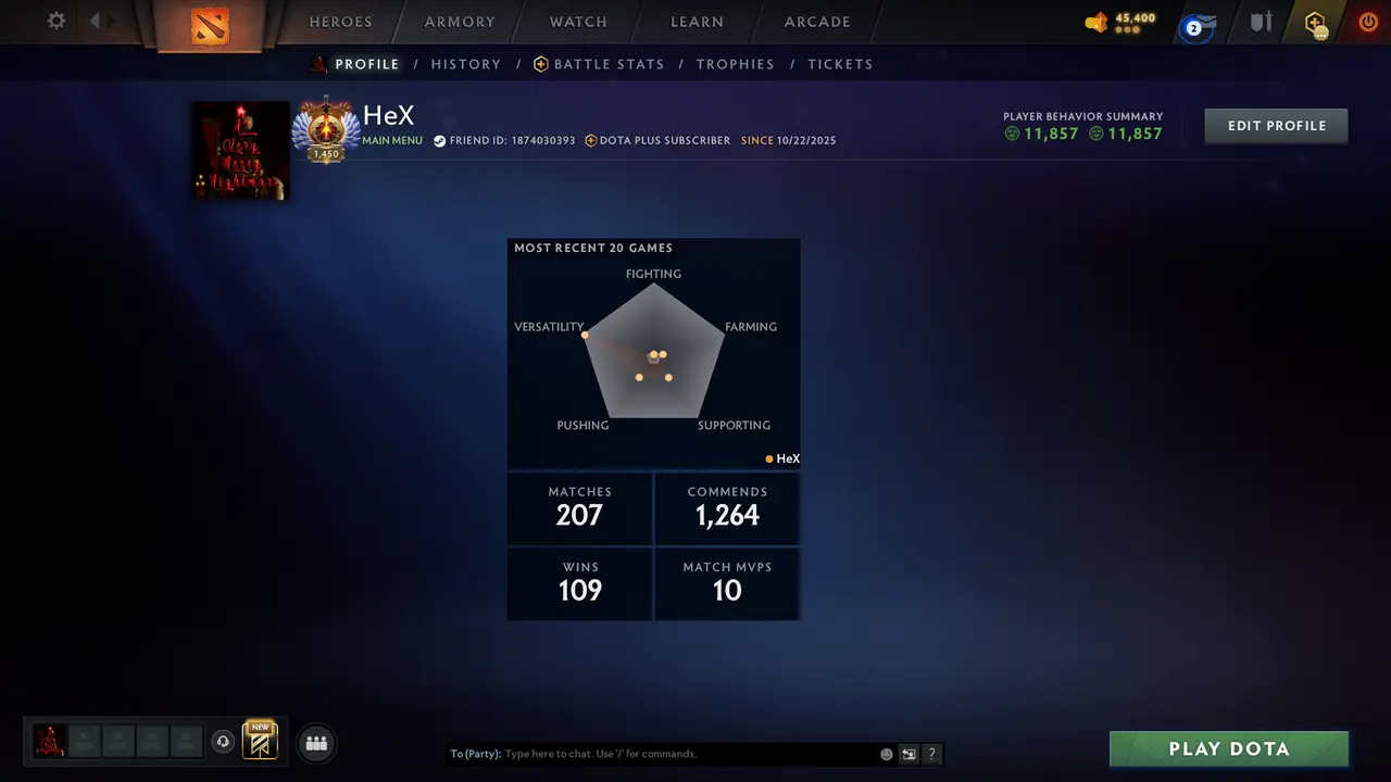 #BB1968 Immortal 11164 MMR+68 LVL TROPHY+209 matches+12k behavior
