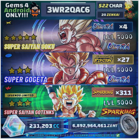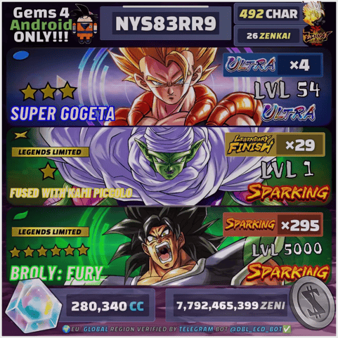 Compre instantaneamente contas DBL com personagens raros e Cristais de Chrono