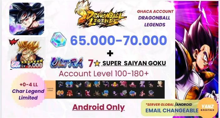 [ANDROID] DBL Account | 65000–70000 Chrono Crystals + UL Super Saiyan Goku (7 Stars) + | Level 100–180+ | 0–4 Legends Limited