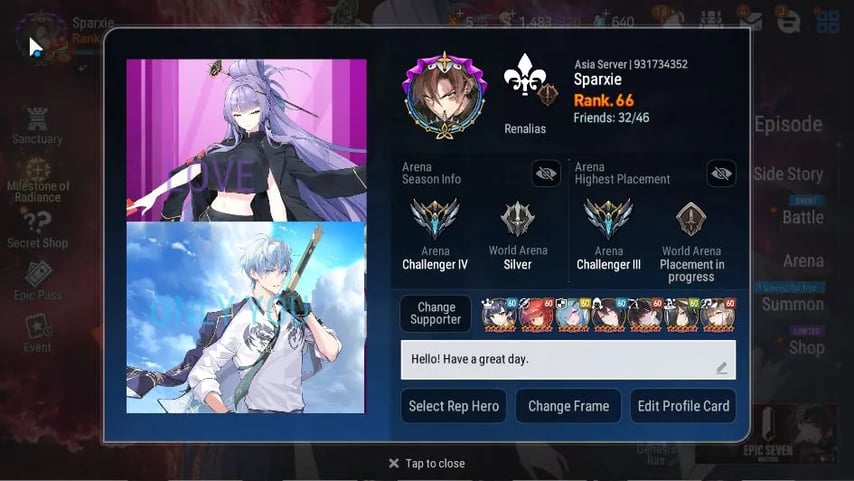 Encontre uma conta Epic Seven que atenda às suas necessidades (plataforma, região, preço)
